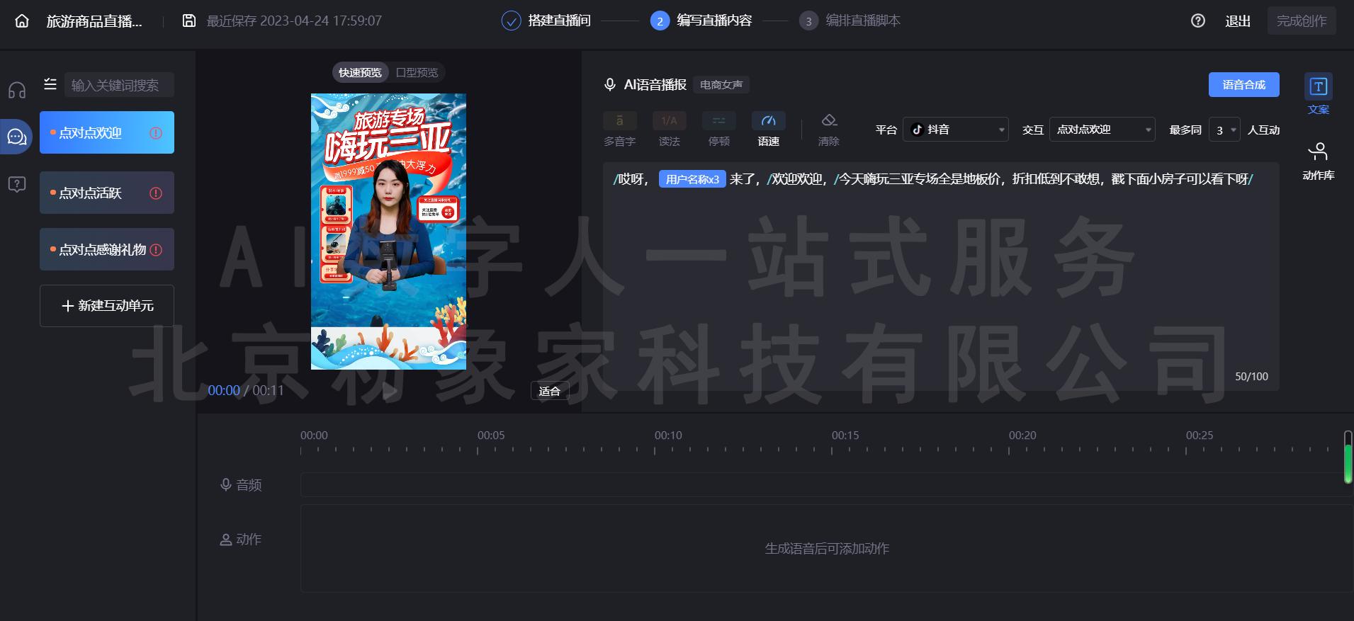 可完成自动化智能直播互动, 面对千万观众的提问, 实时用口播方式回答