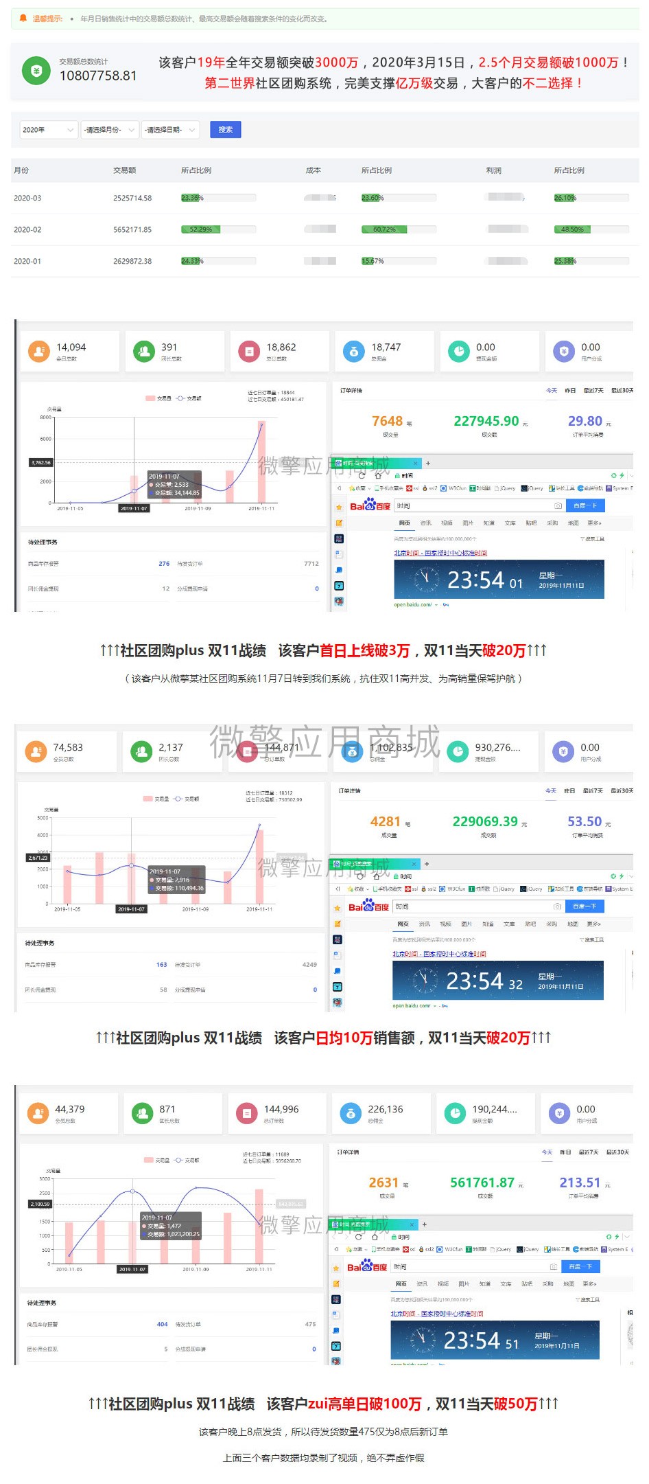 并且在双11期间,多个客户使用社区团购Plus抗住了超高流量和订单量,zui高单日销售额破百万,zui高订单单日破7000单,这是微擎其他社区团购系统都从未达到过的高度。(下面有双11销售截图)