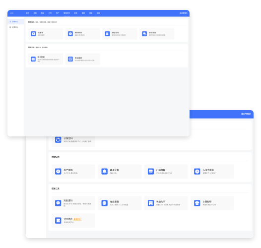 营销中心,应用中心拥有丰富的营销玩法,各种经营应用。所有营销玩法、经营应用都采用插件化,模块化的开发思路,做到业务轻耦合,代码轻耦合。非常便于后续系统扩展和二次开发。