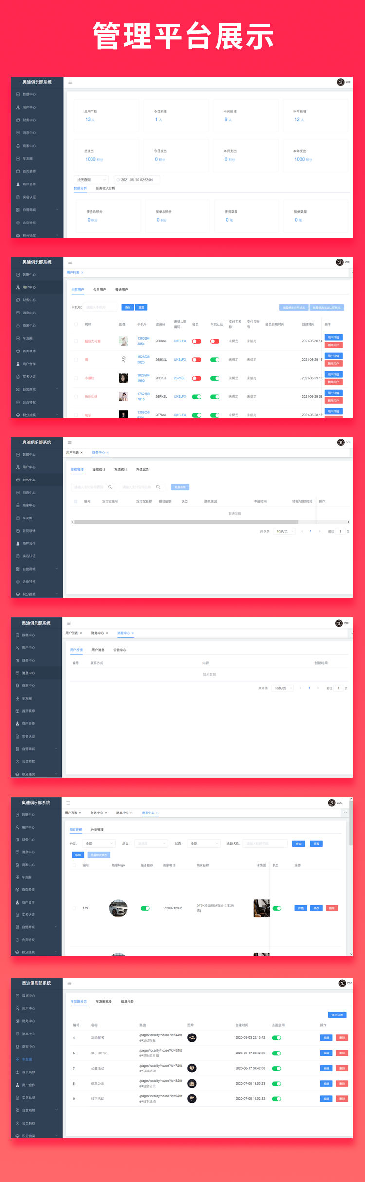 – 活动报名、俱乐部介绍、活动公示、公益活动、信息公示、线下活动等