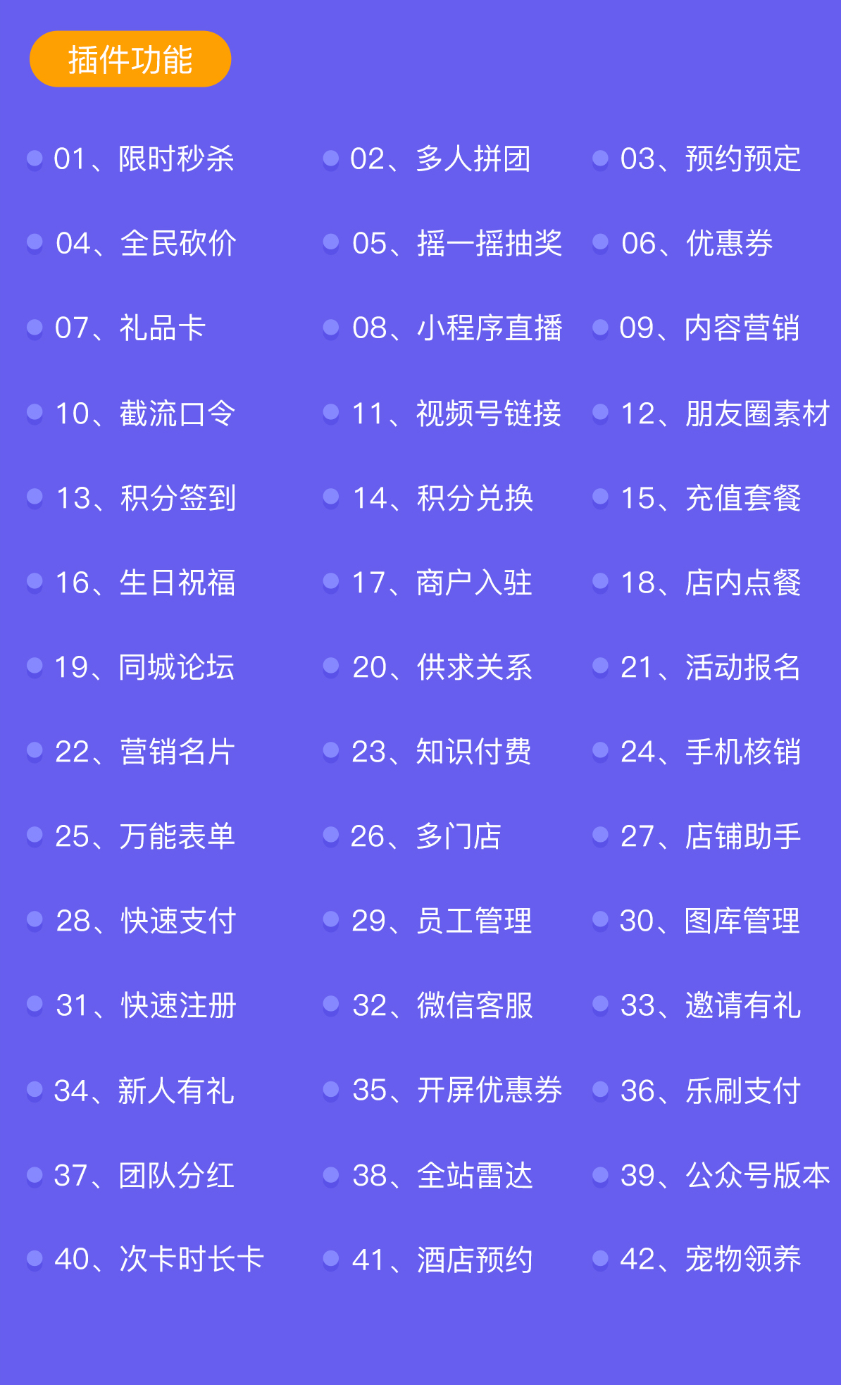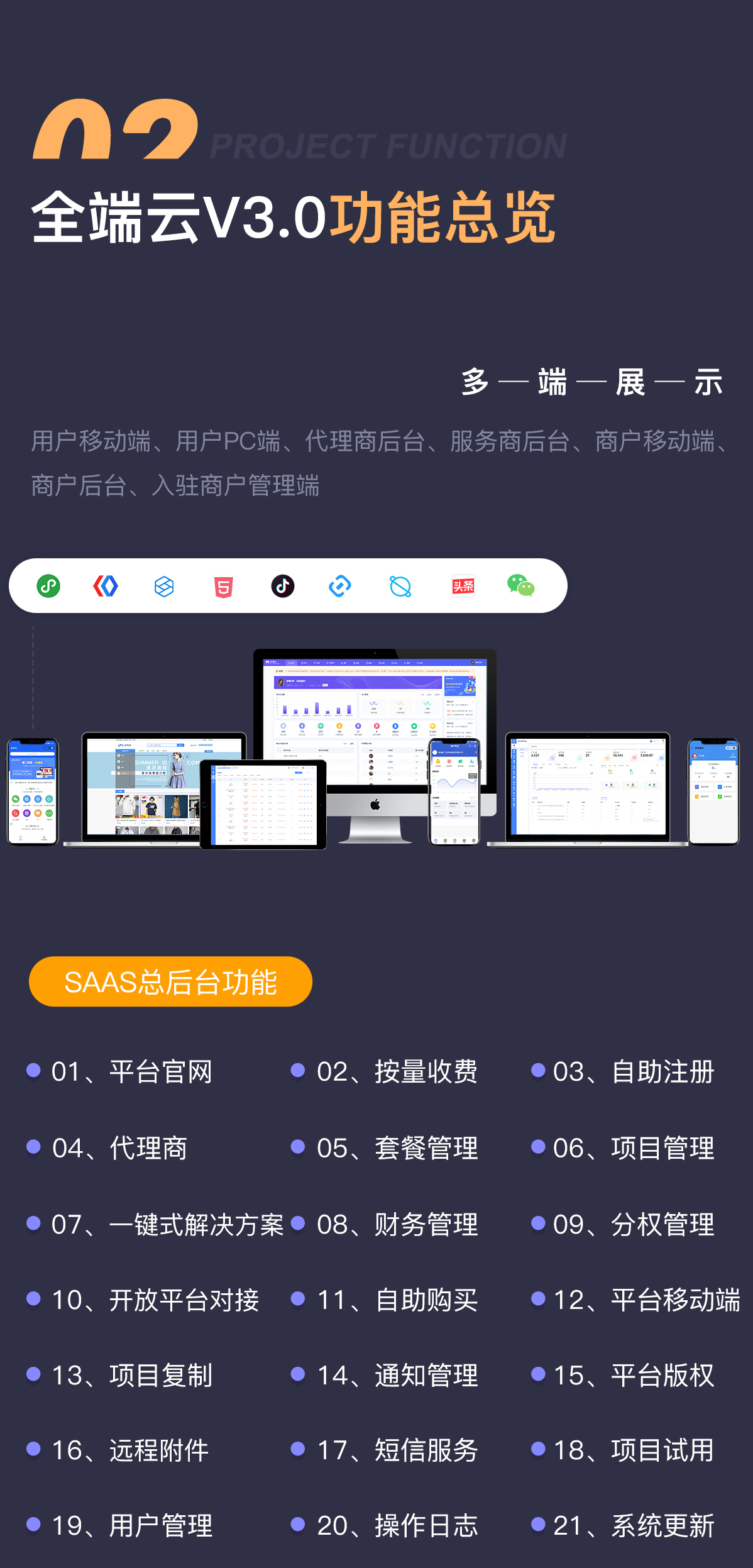 9端互通 |20+行业解决方案| 20+营销插件 |45+DIY模块 |10+行业大型插件 |代理商加盟