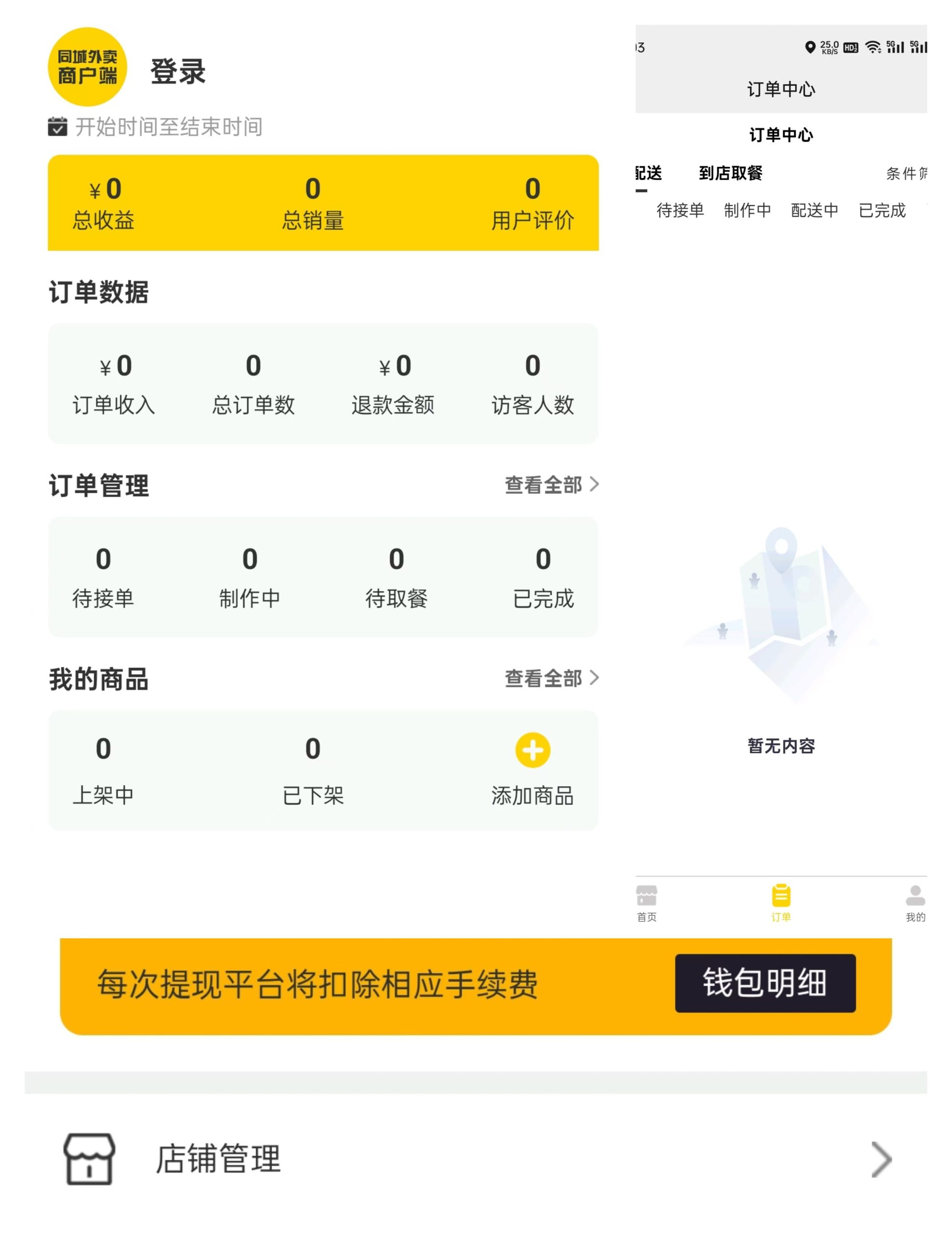 新增登录,门店账户资金,收益统计,商家信息,商家订单,订单列表,订单操作,订单详情,订单筛选,店铺中心,商品列表,商品选择,商品筛选,商品操作,收益统计,联系客服,商品管理,商品分类,数据统计,商品规格,商家入驻