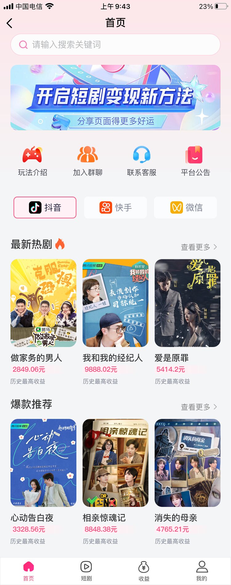 短剧CPS变现系统(独立版+多平台+双端)的盈利方式是: