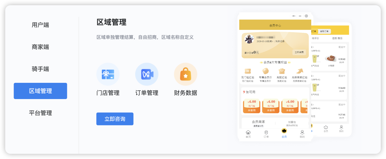 以用户为中心,精心设计,功能丰富。可通过小程序、公众号或APP快速下单