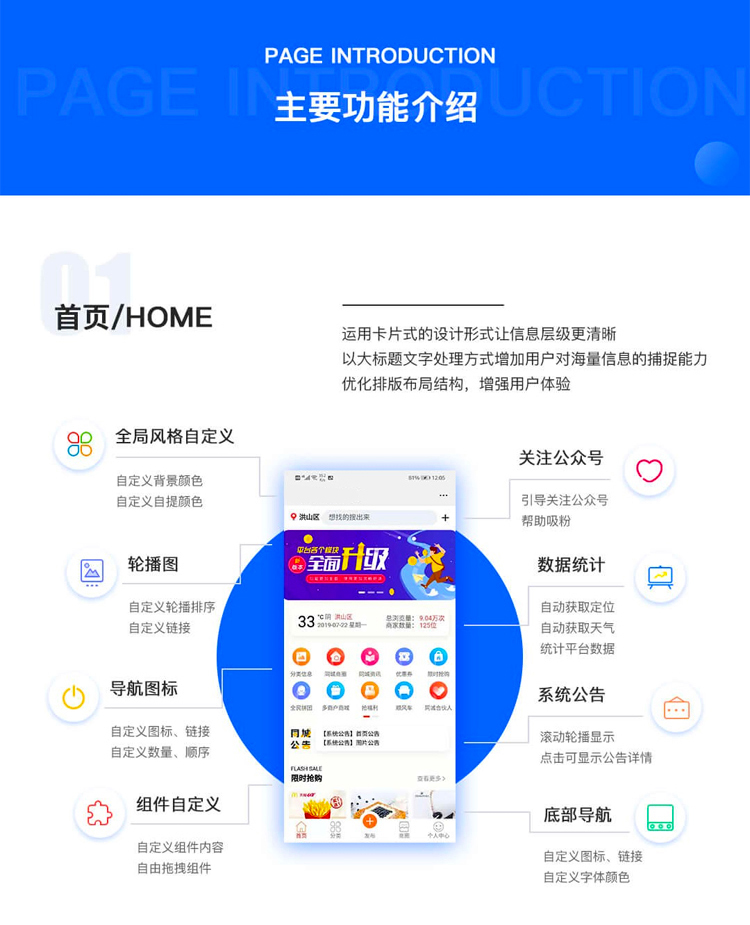 布局:托拽式布局,页面想怎么调整就怎么调整;