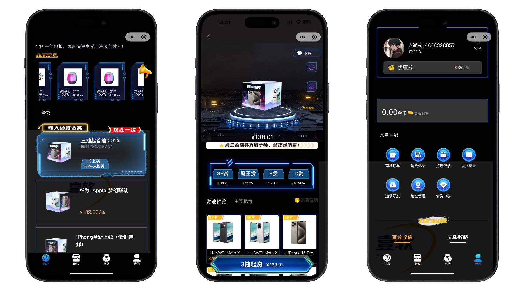 壹软X1盲盒商城系统,目前是单微信小程序(后期可能会开发其他端口)