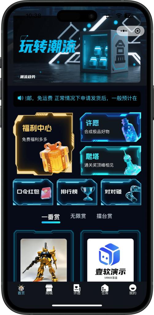 壹软V4Max是一套基于UniApp与PHP开发的可商用盲盒系统,支持多端运行(H5、小程序、App)。系统功能完善,具备完整的用户体系、奖池管理、玩法机制与后台运营支持。