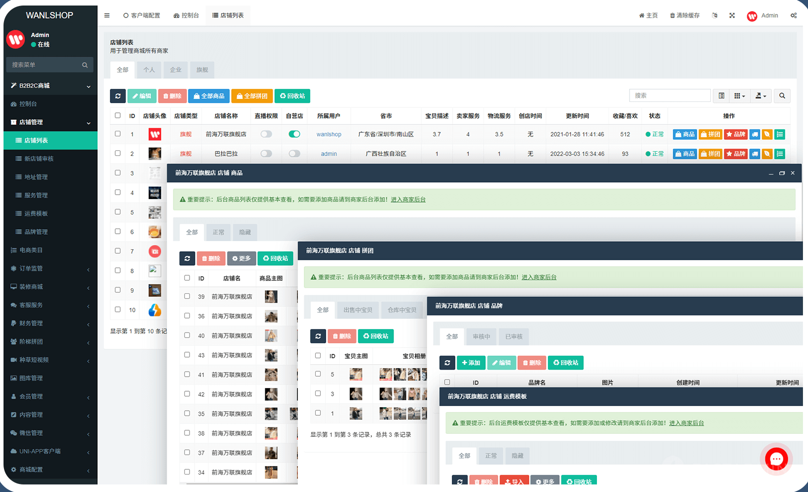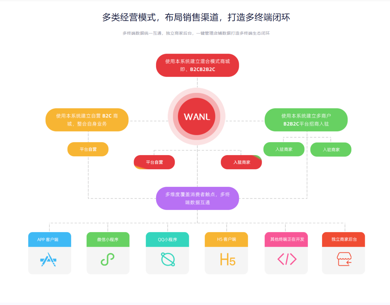 多终端数据统一互通,独立商家后台,一键管理店铺数据打造多终端生态闭环