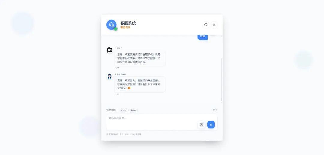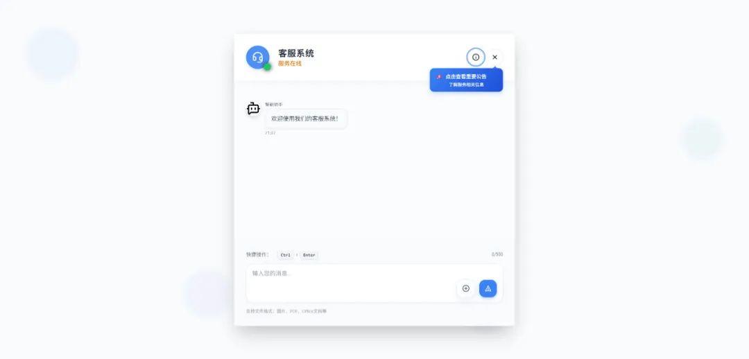5.提供轻量化JS代码嵌入方案,支持将聊天入口无缝集成至网站任意页面(首页/商品页/详情页等),无需二次开发即可与原有页面风格融合;支持隐藏默认按钮,通过浮窗/侧边栏等形式展示,降低用户打扰感。微信服务号基础对接
