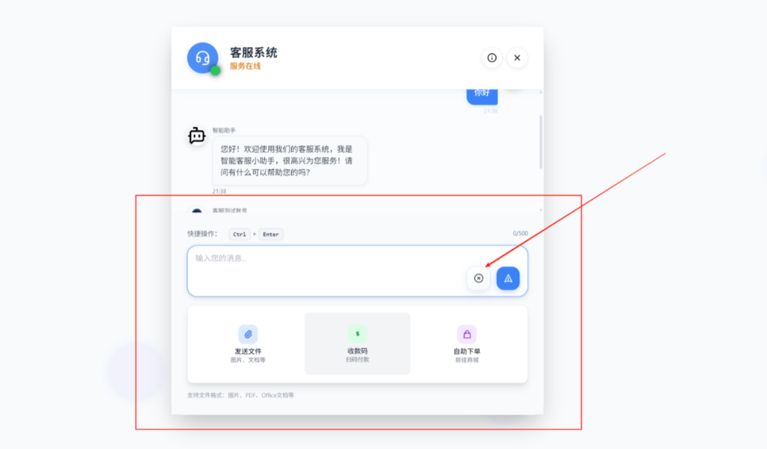 商城链接:后台添加商品详情页、促销活动页等外部链接(支持HTTP/HTTPS协议),配置后自动在用户聊天页面展示可点击入口 收款码配置:仅支持上传1张收款码图片,可设置收款说明提示信息(如“扫码支付请备注订单号”),配置后用户聊天页面和客服后台可以查看收款码信息,客服可快捷发送收款码