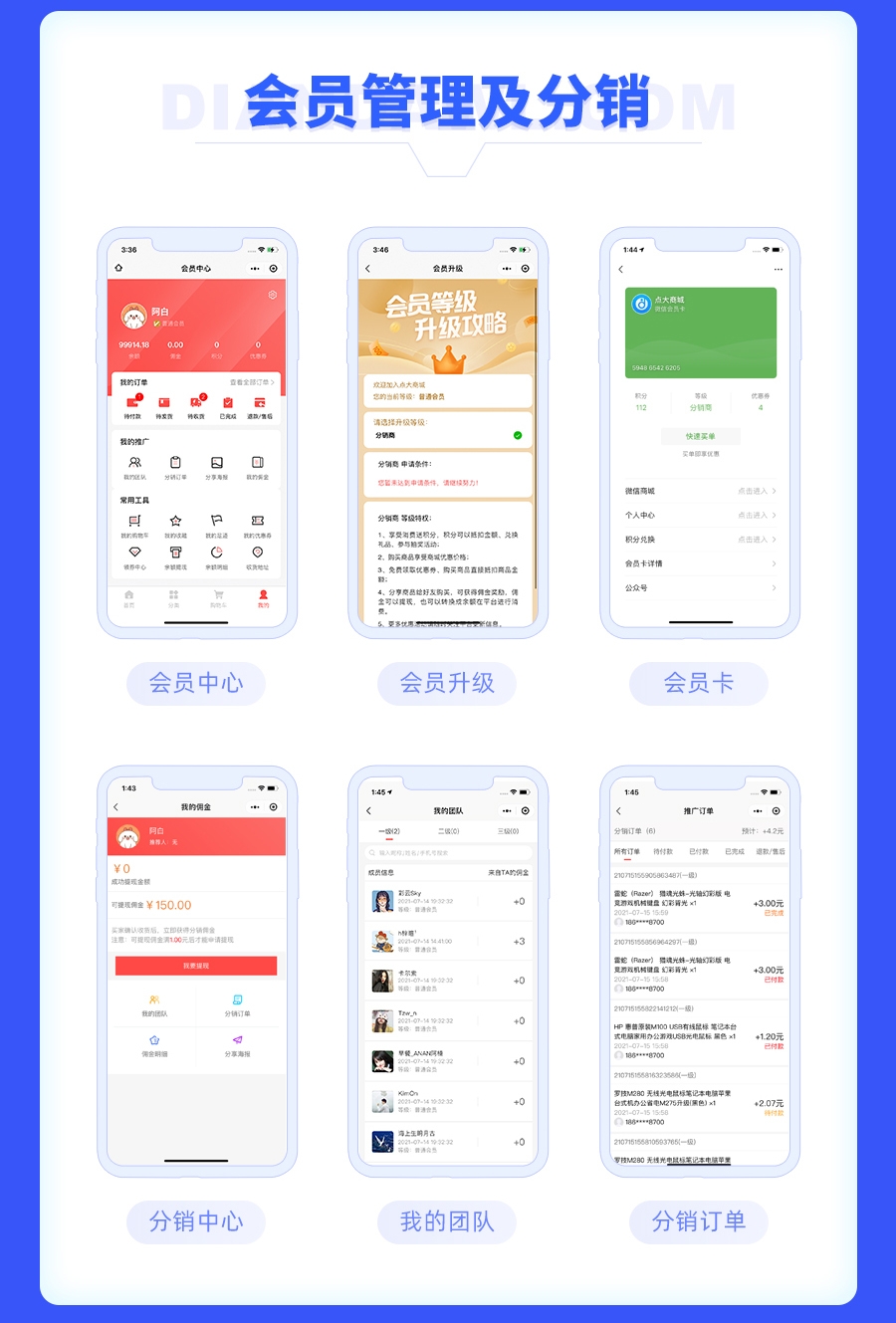 2.【订单管理】可查看当前用户在小程序商城中的订单,可一键点击发货,修改订单,发送订单等;