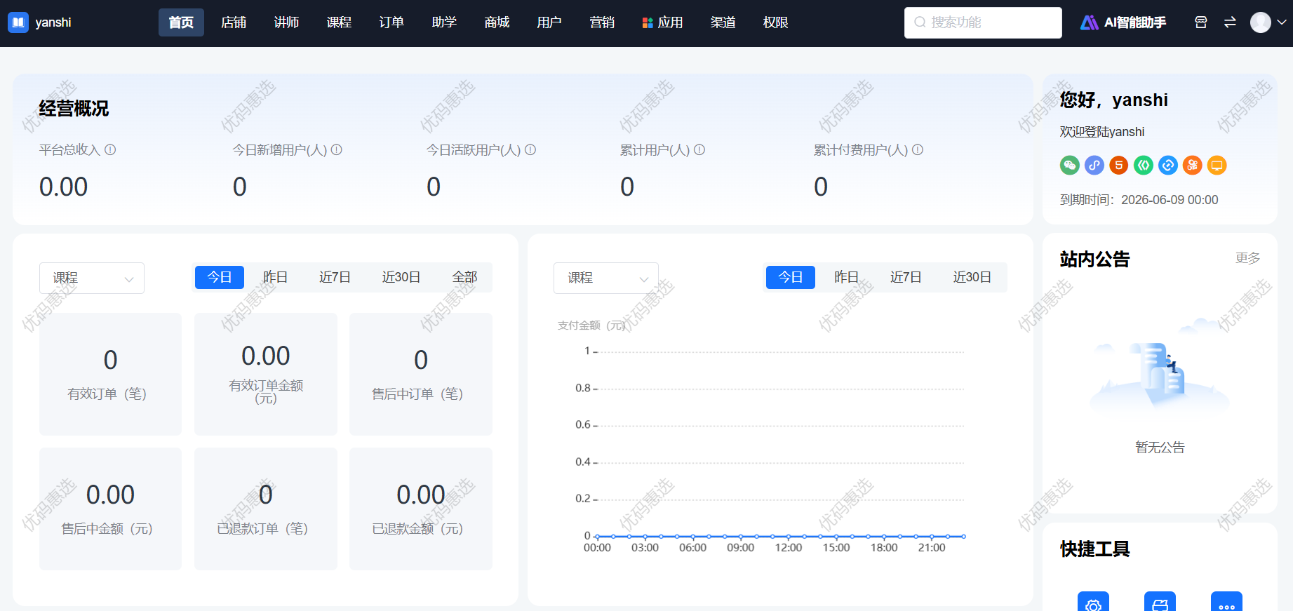 云之道知识付费正版SAAS账号, 知识付费,在线考试,题库,刷题,首页支持DIY 含超级试卷,多讲师,AI应用等最新插件。