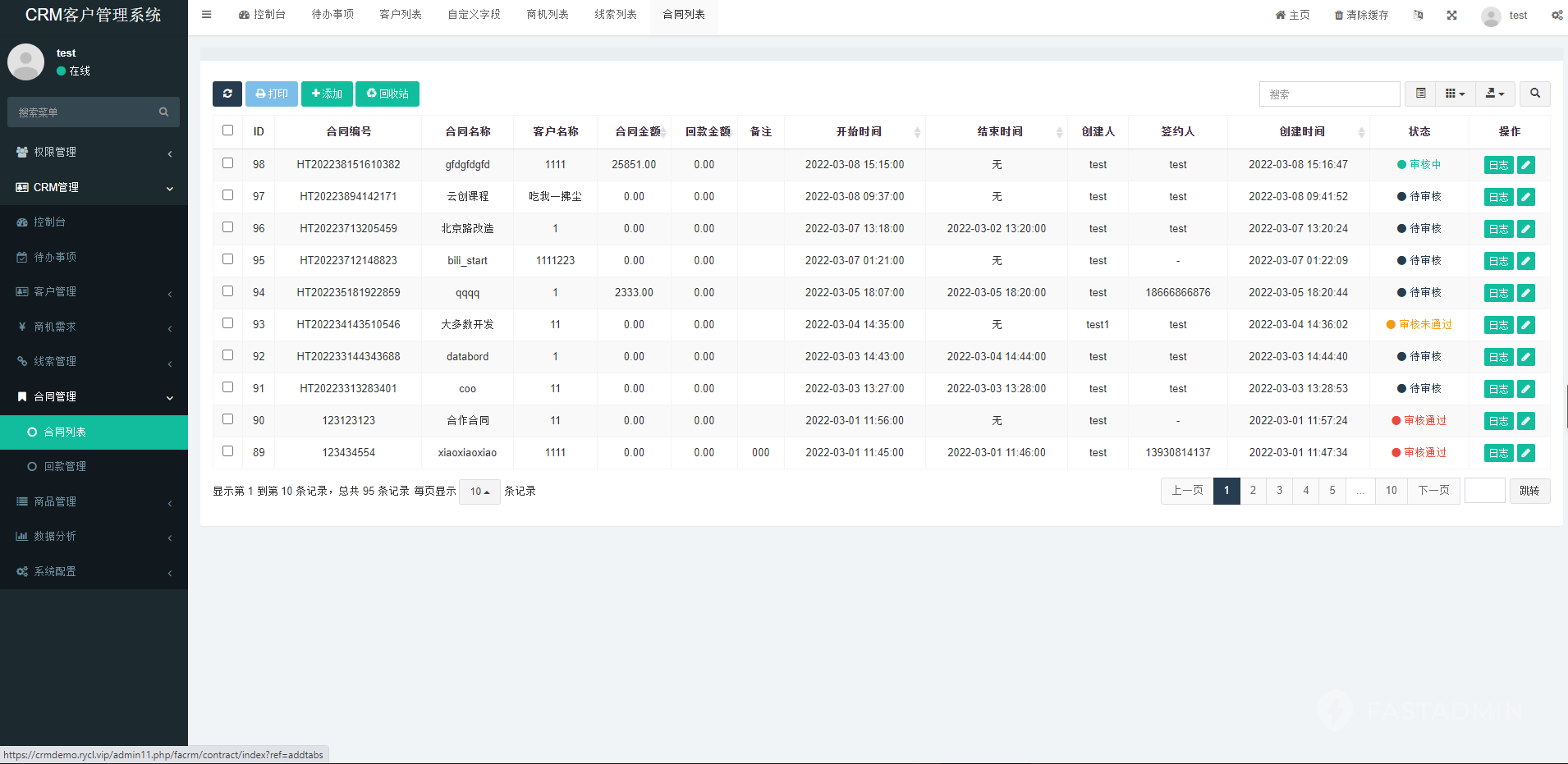 3、合同管理、收款管理等