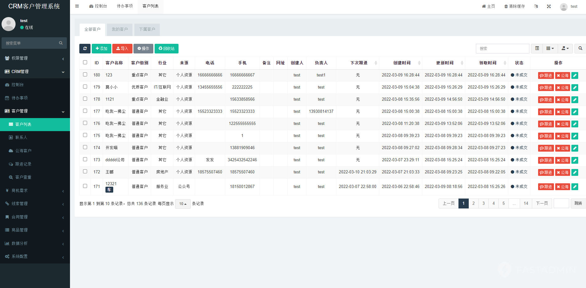 CRM客户关系管理系统是一款基于thinkphp+fastadmin开发的客户管理系统。