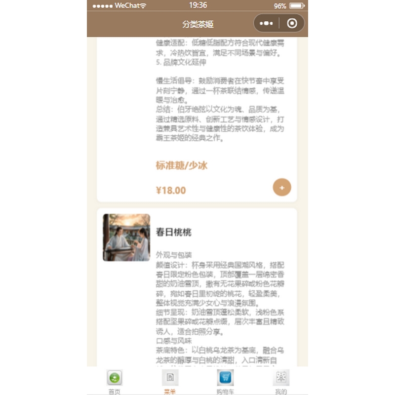 这是一个漂亮的奶茶店门店小程序,也是一个外卖奶茶店小程序.