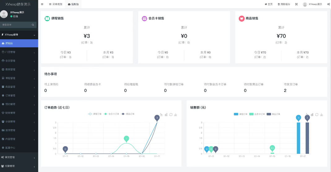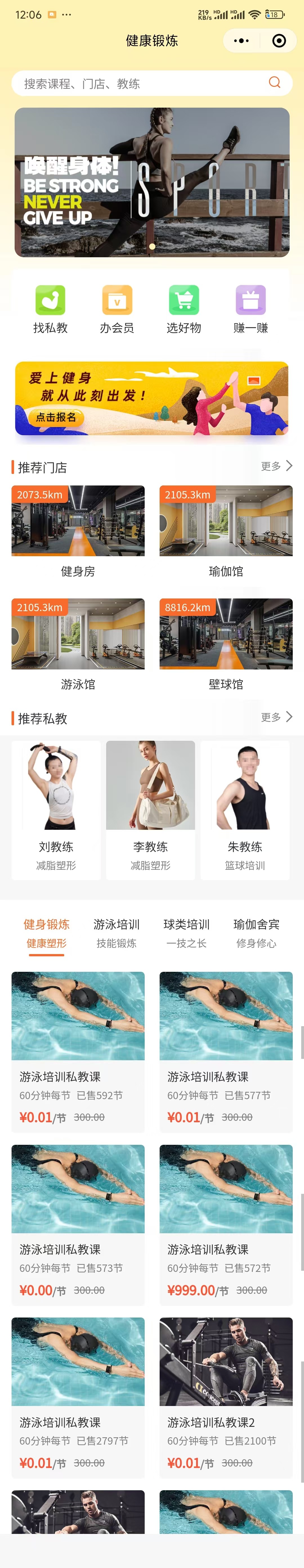 基于FastAdmin+UniApp(目前仅支持微信小程序和公众号)开发的健身相关行业小程序,程序适用于健身房、瑜伽馆、游泳馆、篮球馆等健身培训场所。平台拥有课程售卖、课程预约、多门店管理、私教预约、教练端、会员卡办理、在线商城、分销模块、页面自定义装修等功能,为健身场馆提供智慧型运营解决方案,平台简单便捷,能有效提升场馆办公效率。