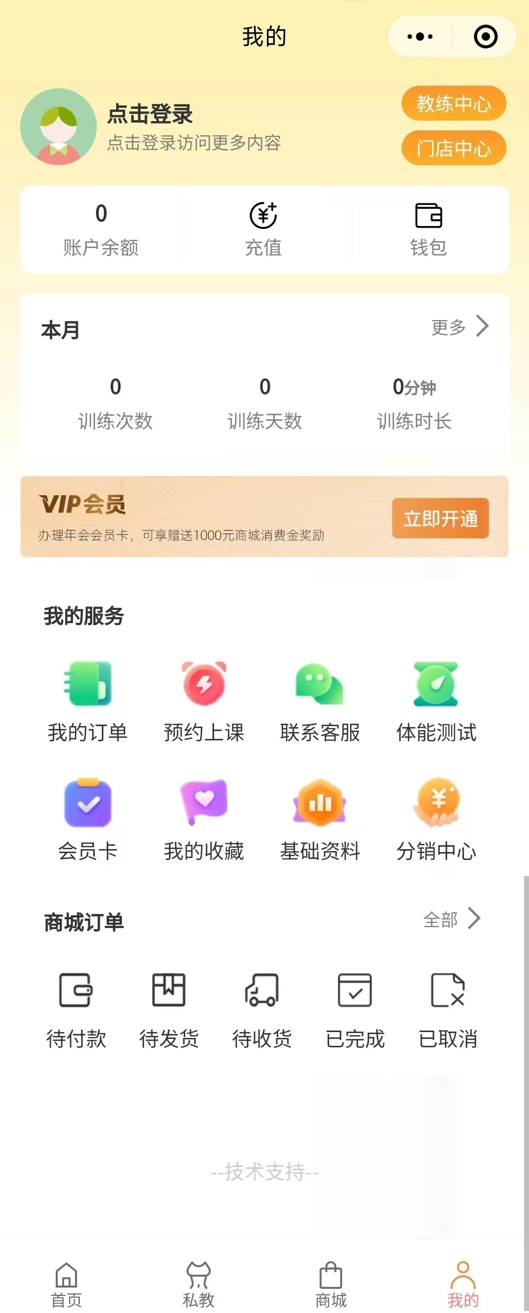 可售卖健身周边产品、包含物流查询商品管理等功能。