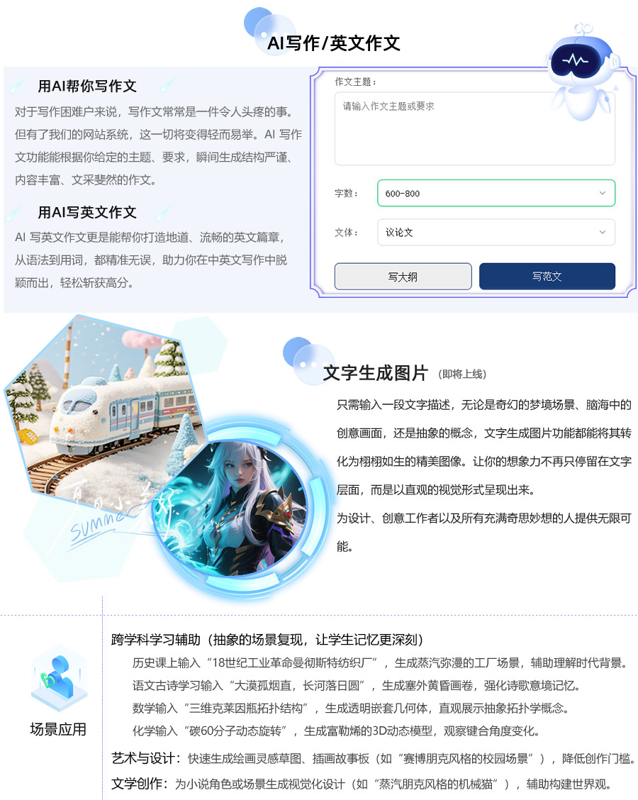 速玖云 | 企业数字化快建管家 正版系统 《AI学习助手》用人工智能助力学习/拍照答疑 /拍照翻译/AI写作文 /AI答疑 /图片创作 https://www.jiujiushuyuan.cn/3179.html