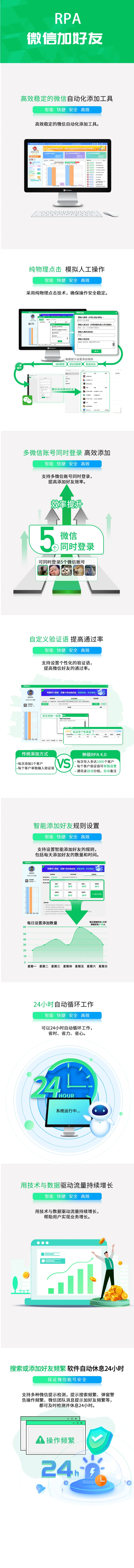 基于成熟的 RPA 技术,RPA 即机器人流程自动化(Robotic Process Automation),目前已研发上线了 9 款 微信营销自动化工具。