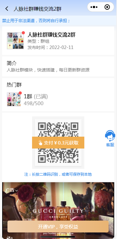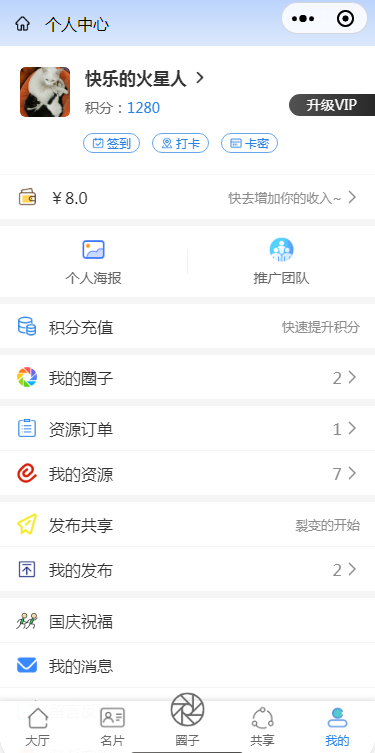 本模块集结关注公众号、vip、流量主、邀请、分销、虚拟群、现金支付、积分支付和朋友圈等裂变引流变现功能,可以快速曝光人脉。