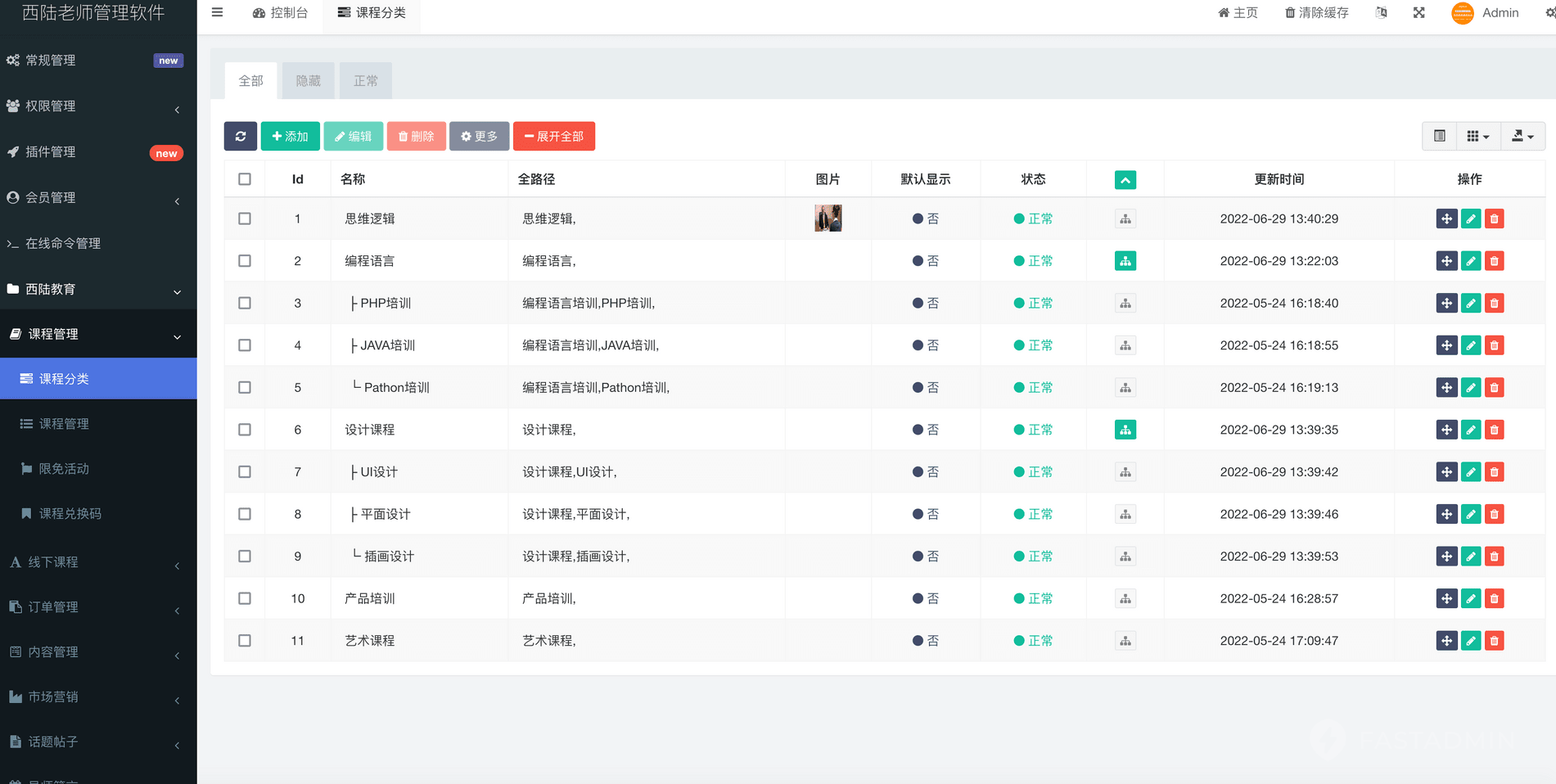 - 后台基于 FastAdmin 开发:界面像 “用 Excel” 一样简单,添加课程只需填 “课程名、价格、上传视频 / 音频”,3 步搞定;查看报名数据、用户积分,点 “导出” 就能下 Excel,老师半天就能学会;