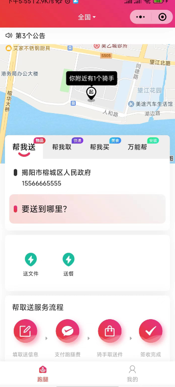 - 多配送模块:支持配置 4 类核心模块(帮我送、帮我取、帮我买、万能帮),不同模块可单独设置计费规则与功能开关。