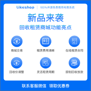 likeshop回收租赁系统适用于物品回收、物品租赁、二手买卖交易等三大场景。 系统支持智能评估回收价格,后台调整回收价,用户同意回收后系统即刻放款,用户微信零钱提现。支持在线生成租赁合同,交付租赁押金,生成分期付款合约,逾期自动计算滞纳金。 功能强大,流程严谨,无论运营还是二开都是性价比高的开源回收租赁系统,