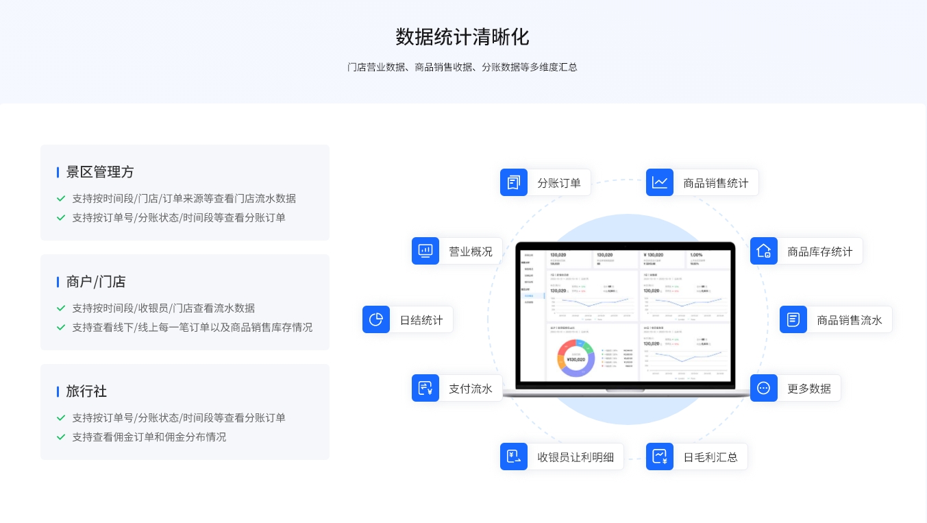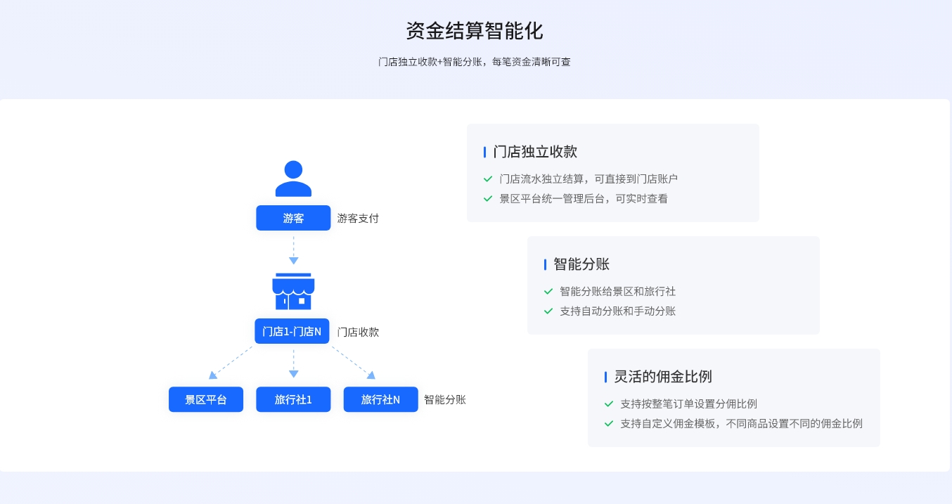 2.资金结算解决方案:平台统一收款、门店独立收款+智能分账;