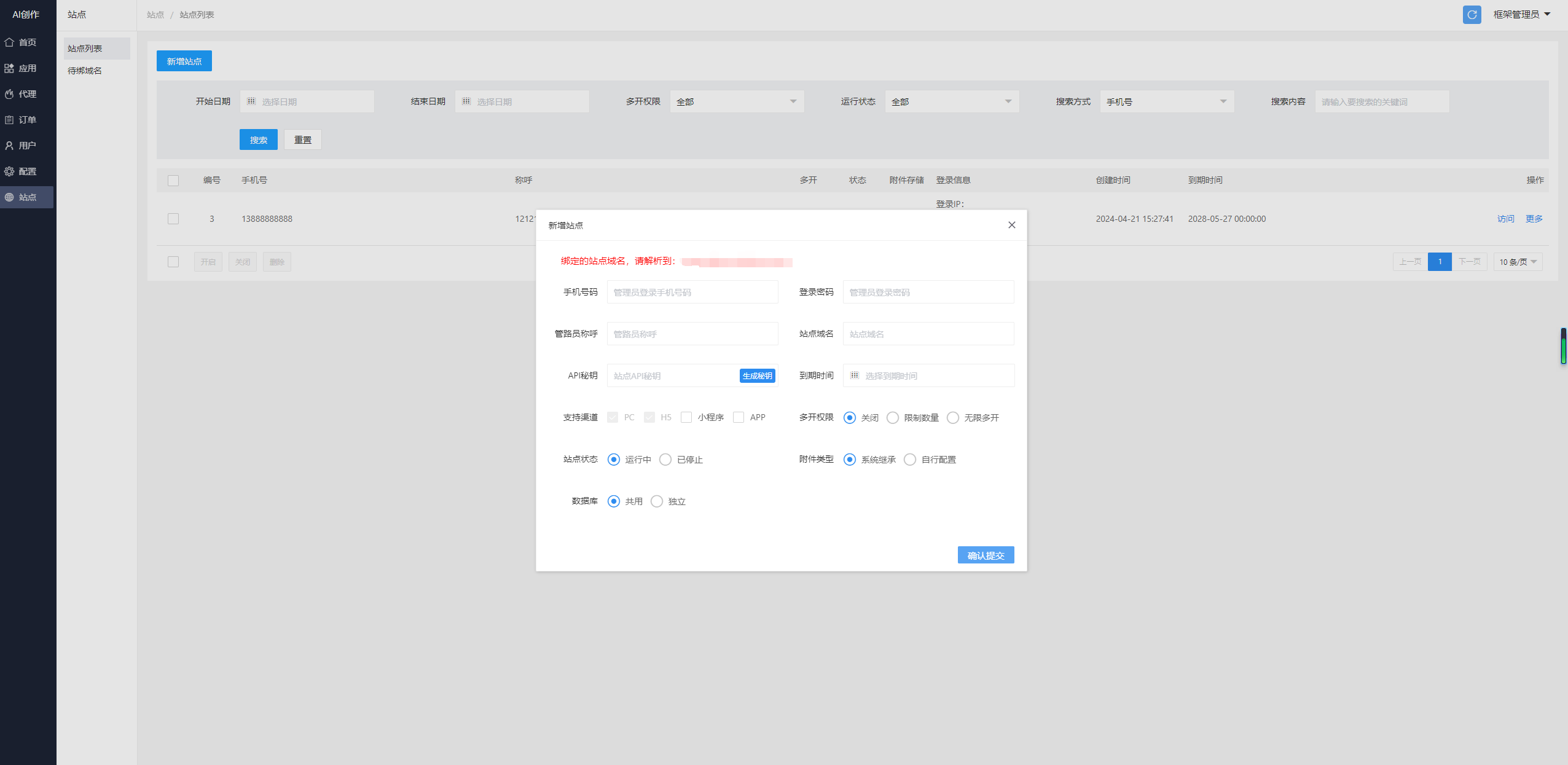注:系统需要服务器ip授权,为了防止泛滥使用更改授权需要授权服务费用