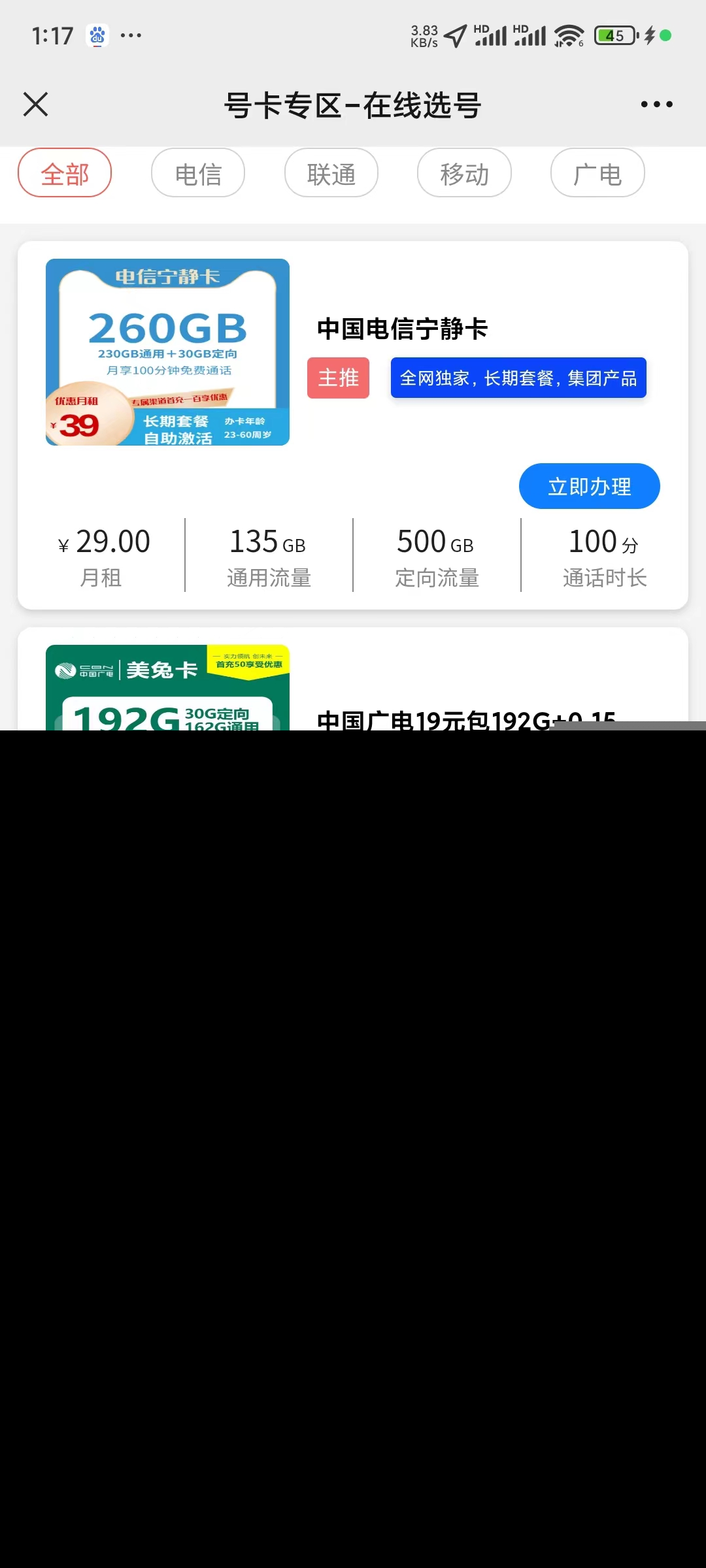 ~号卡列表丨产品筛选丨产品详情丨下单提示丨客服帮助丨店铺主页丨订单查询丨物流轨迹