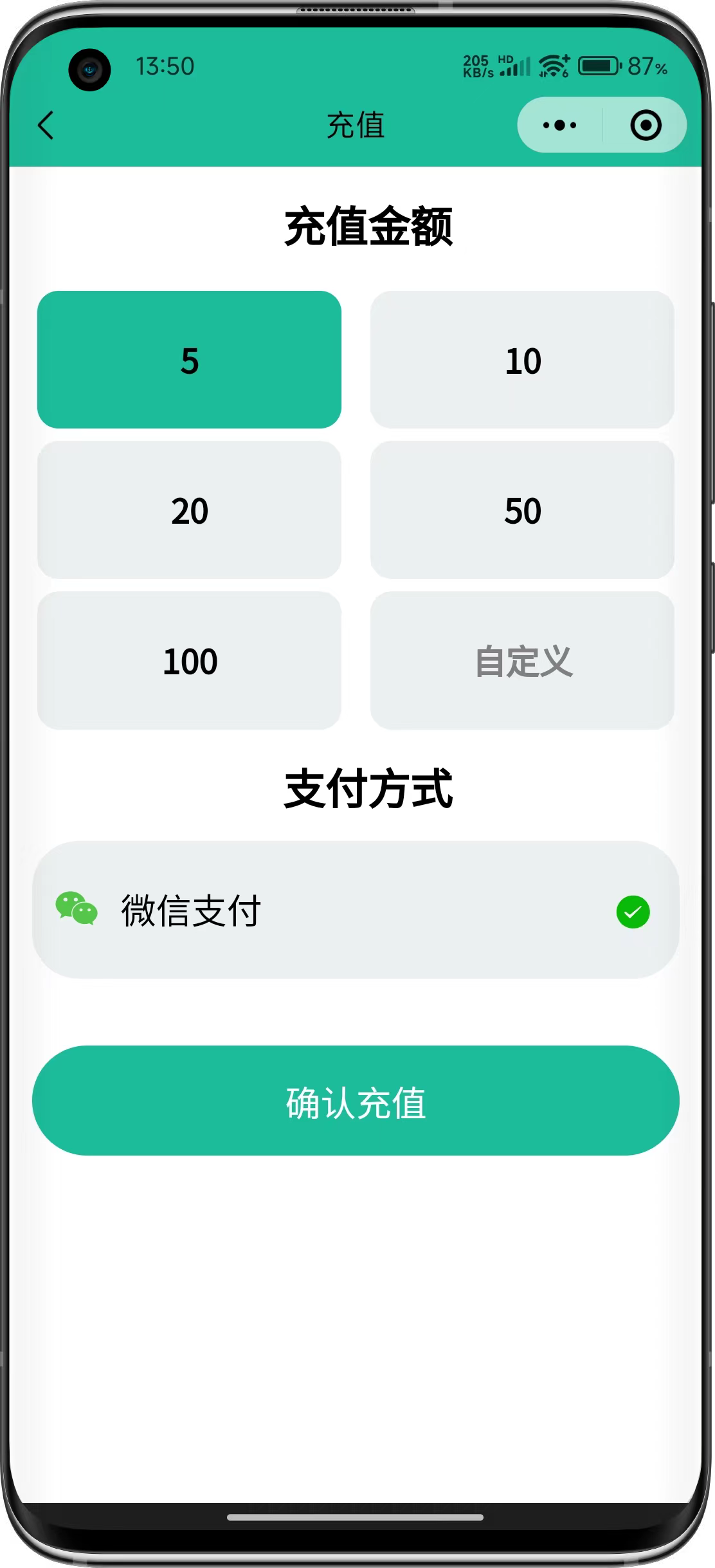 1.通过微信或者打开小程序扫描插座上的二维码,点击开始开始充电。