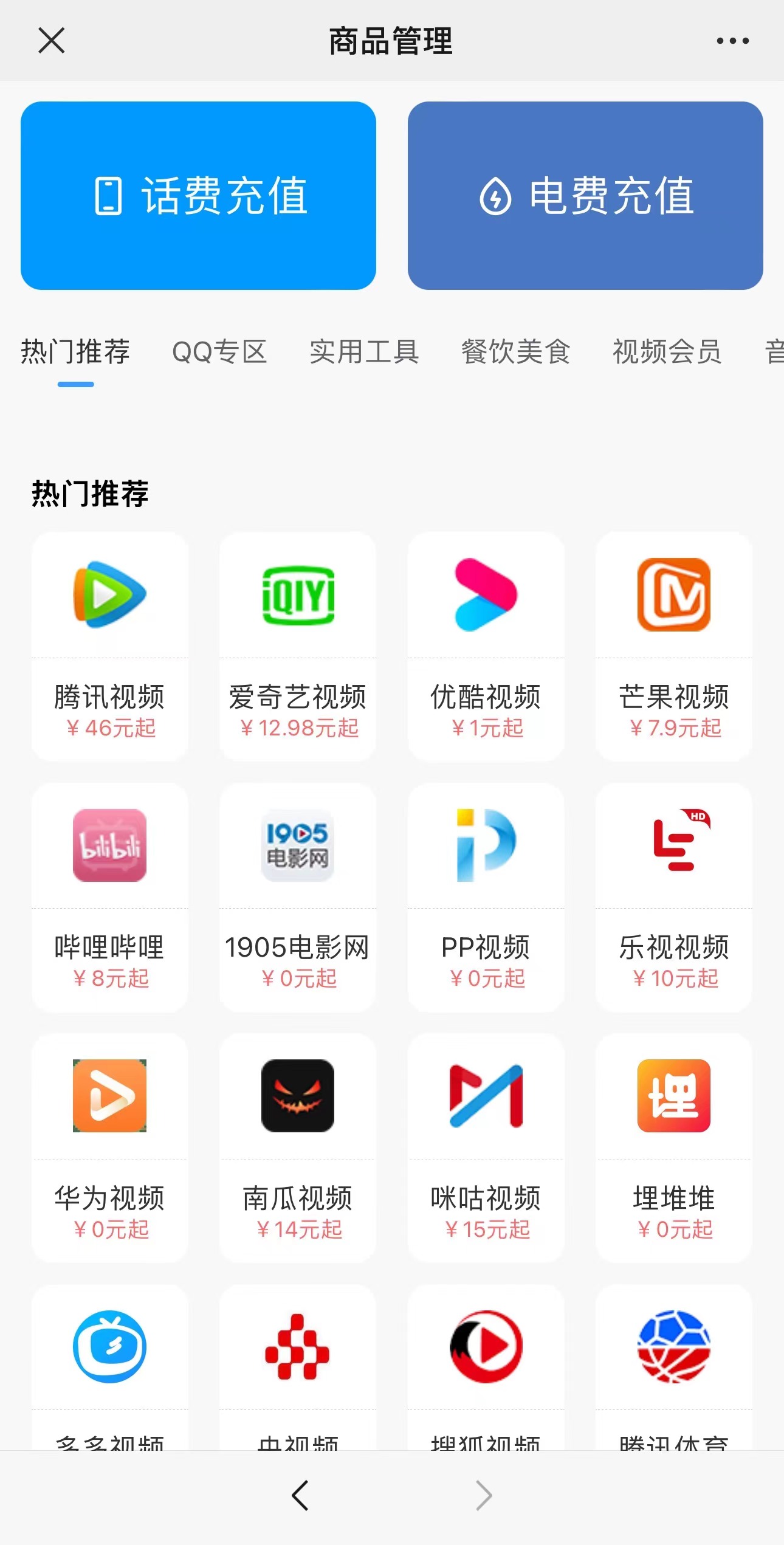 1.直充商品(100+种):官方直充商品,支持自定义商品售价、利润差价等,未来消费数字商品持续更新!