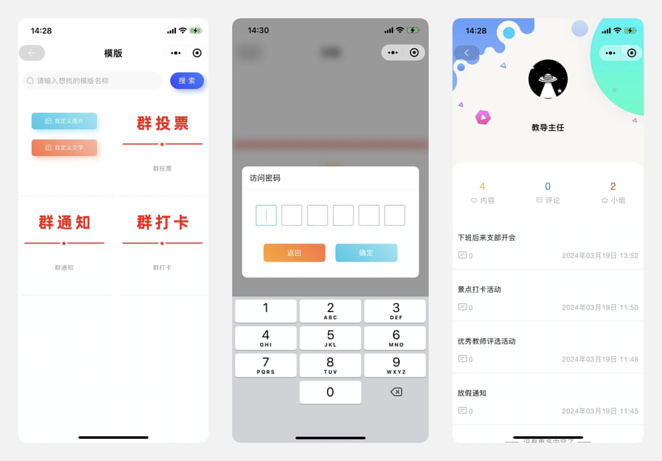 小程序部分功能截图
