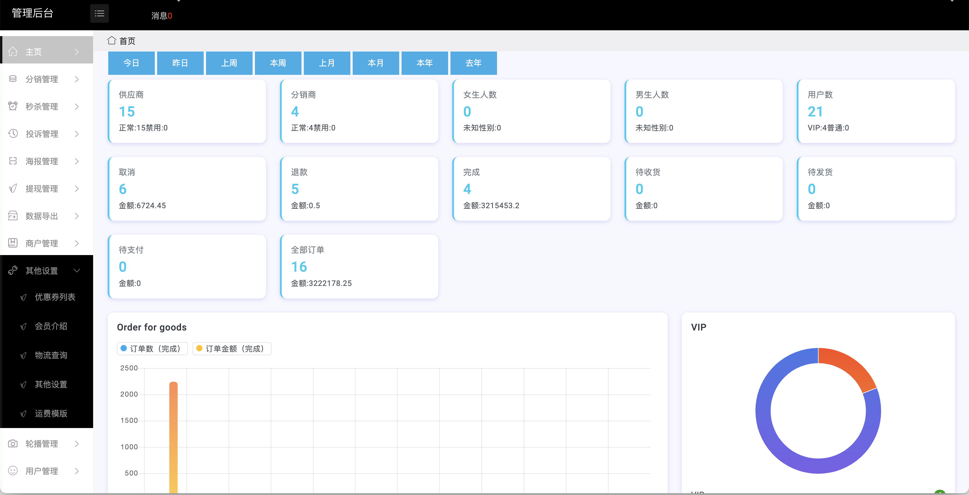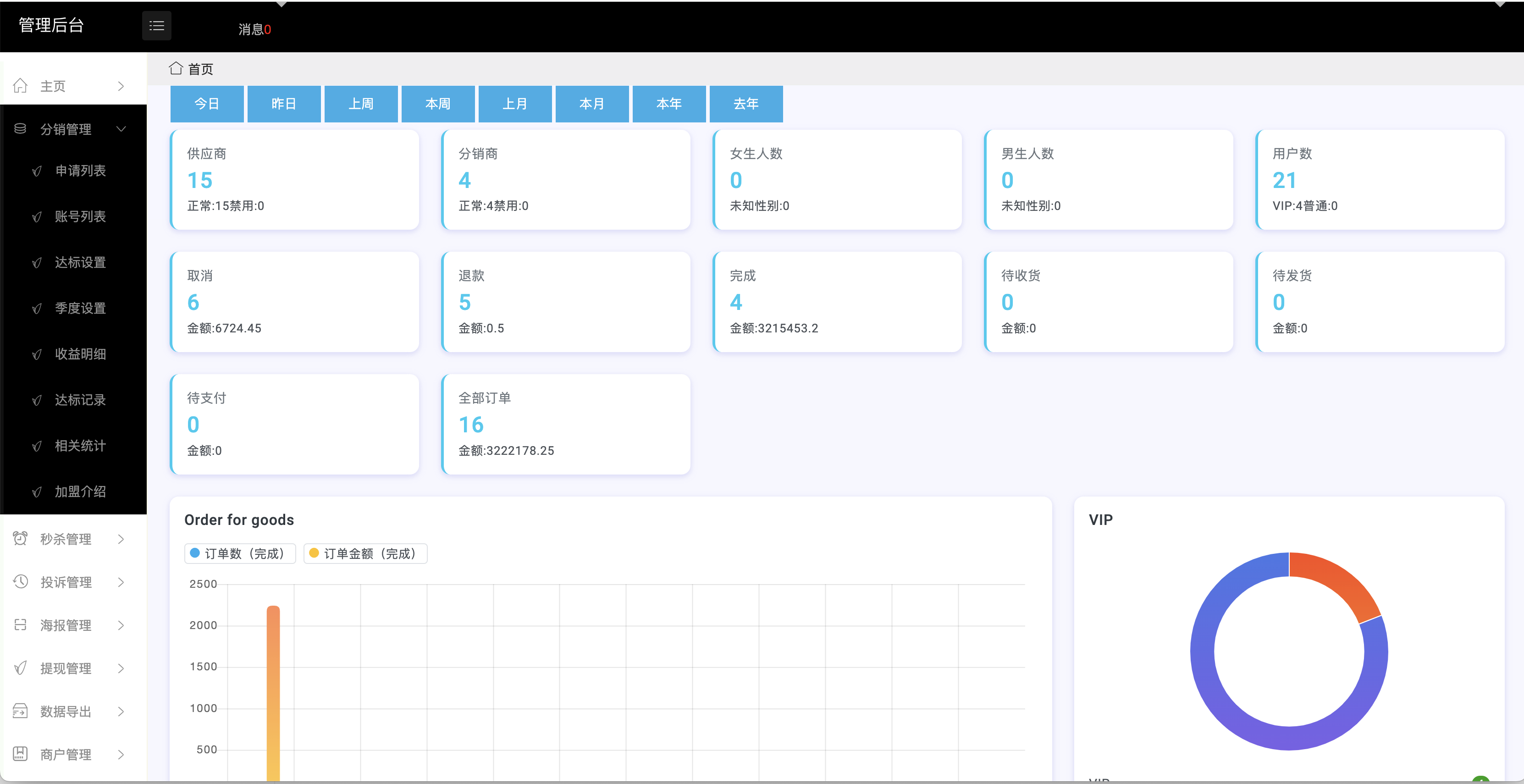 分销管理,会员管理,残酷管理, 投诉管理, 账号管理 ,商户管理,多客服设置 ,平台总客服,供应商客服,代理客服。