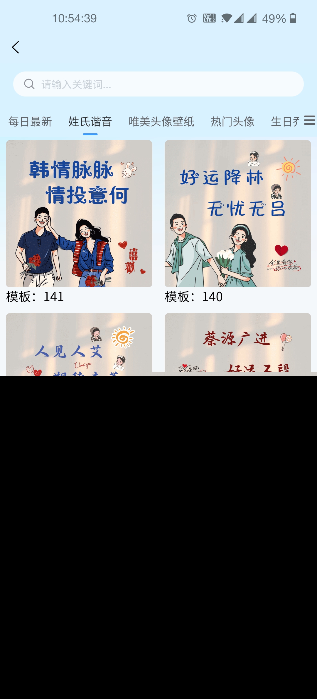 4:精美壁纸:分为【每日最新,姓氏谐音,唯美头像,热门头像,全家福壁纸,情侣头像】