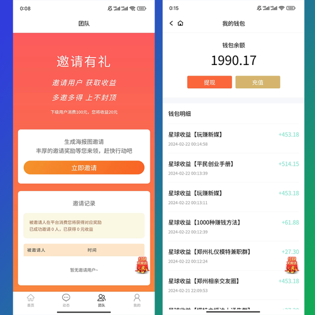 假设平台设置抽成比例为10%,用户加入星球100元,平台收益10元。抽成比例可在后台设置。