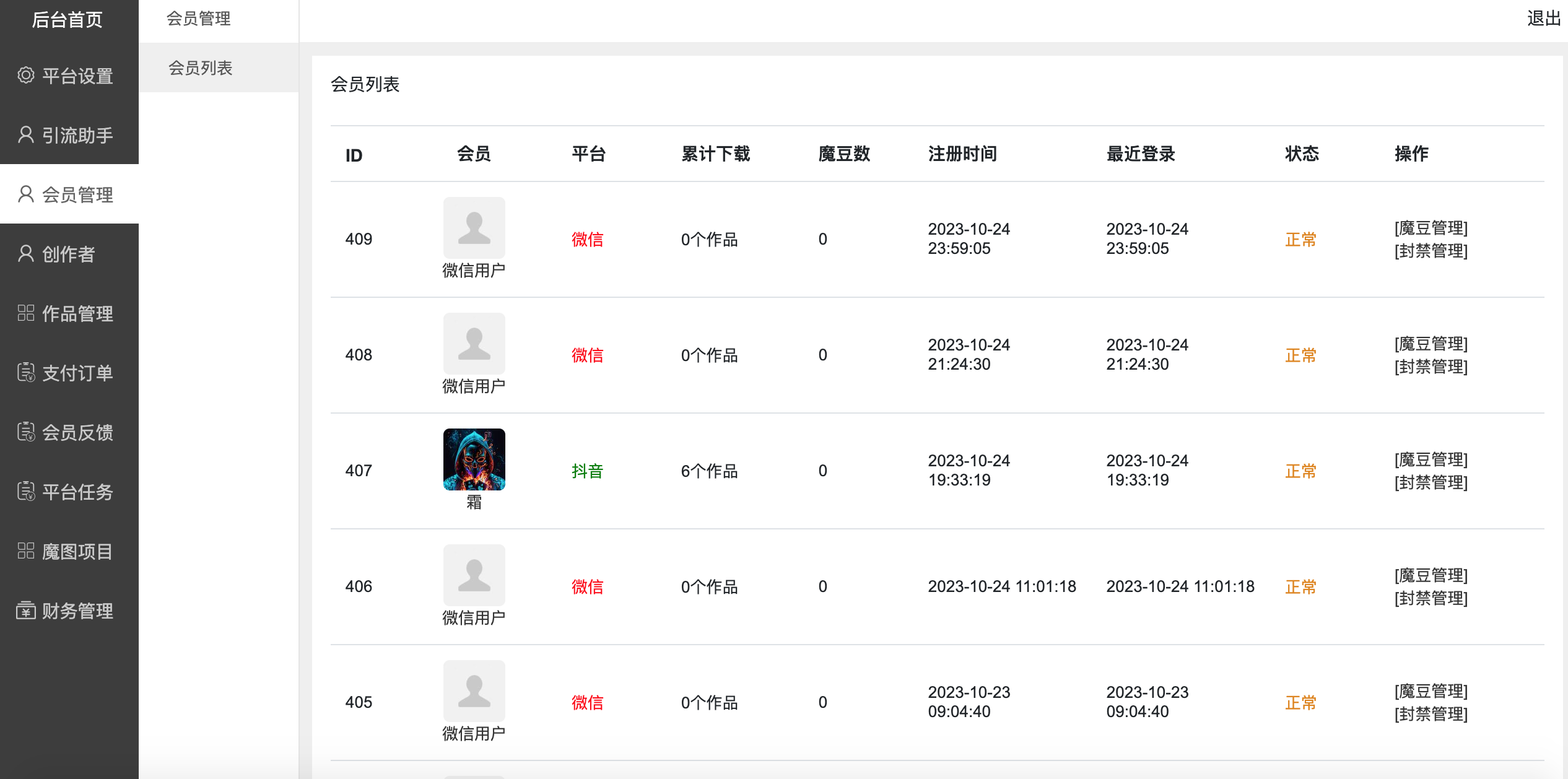 图文类小程序抖音微信两端,可提供壁纸、表情包、背景图等素材供下载获取流量主广告费,平台采用二级分销,可快速裂变推广平台,抖音端可以直接视频挂载小程序链接,达人也可帮助推广获取流量分成,抖音现在流量主点击收益约在0.5-1.2之间,费用还是挺高的,不多说上系统截图,注意本系统是单独系统不依赖于ktadmin框架,请先看演示: