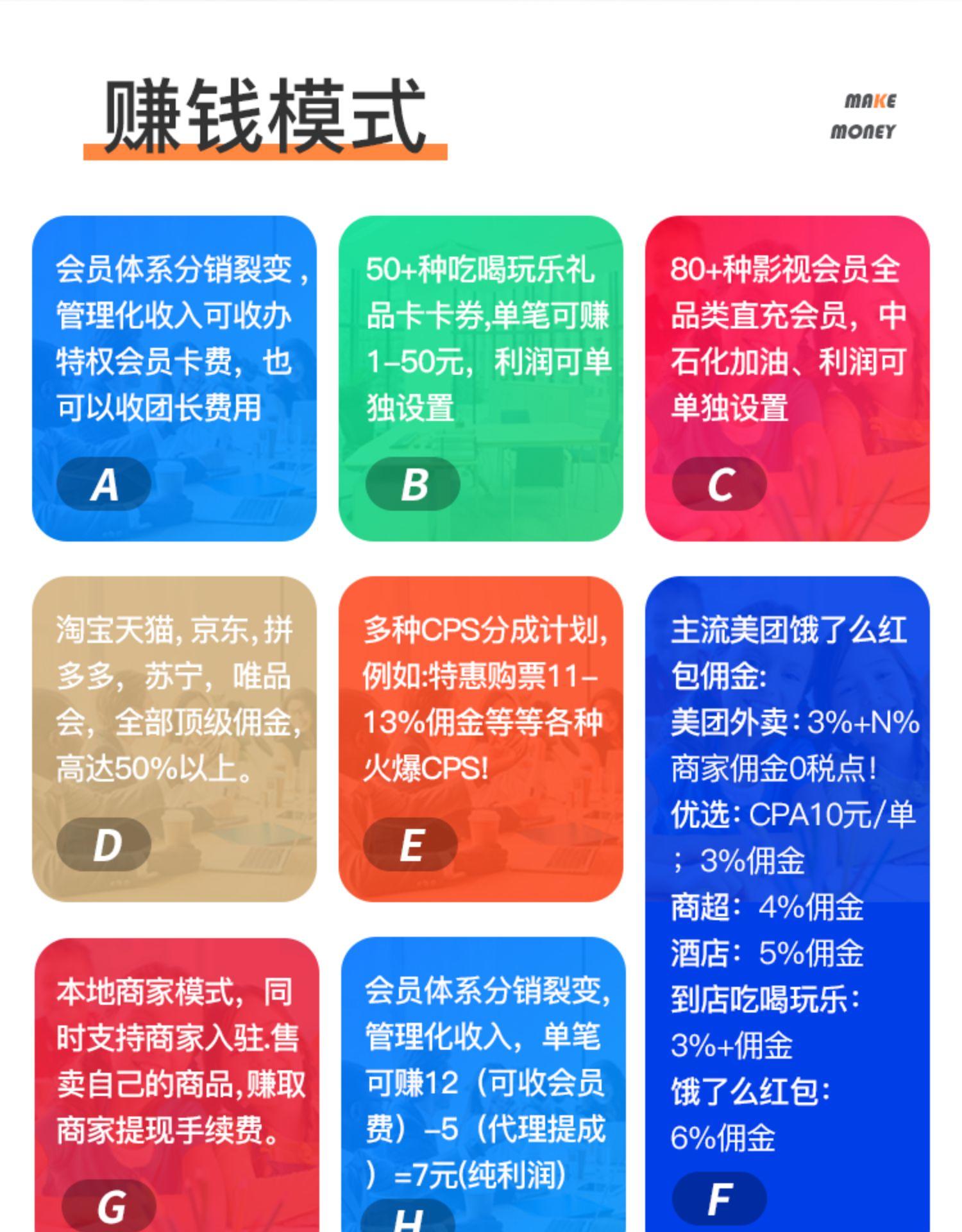 涵盖吃喝住行、礼品卡、影视卡、加油卡、线上购物生活的方方面面。用户省钱享受,单单即可赚钱。所有商品资源全部自动化更新,不需要人工操作发货,系统自动完成进销存处理