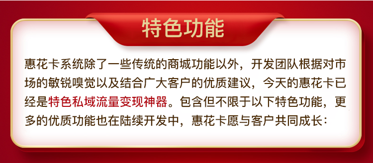 惠花卡系统以优势资源依托,除了定位为私域流量变现专家,更被行业内成功运营商业模式美誉!