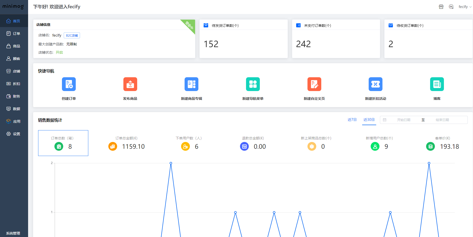 Fecify自建saas跨境商城系统,一套系统开N个独立站商城店铺,每个店铺使用独立域名,N个店铺的产品和订单统一管理, 每个店铺可以绑定不同的插件实现不同的功能,独立站店铺支持模板可视化装修,对SEO友好, 该系统产品功能全面对标shopify, 和shopify不同的是, Fecify系统搭建到您自己的服务器, 做到100%的私有化saas(系统和业务数据全部在您自己的服务器上面),搭建完全属于您自己的私有saas跨境电商系统