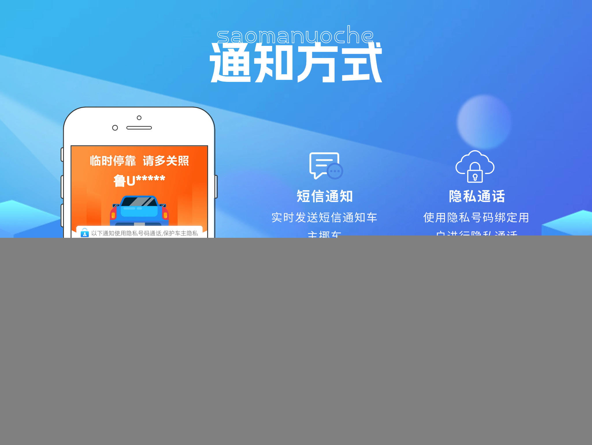 亮点一:便捷沟通,一扫即可。当其他车主被您的车辆阻挡,只需扫一扫挪车码,即可通过微信公众号模版消息、短信提醒、隐私通话、明文通话四种方式,轻松联系上您,让您随时随地挪车,省时省力。