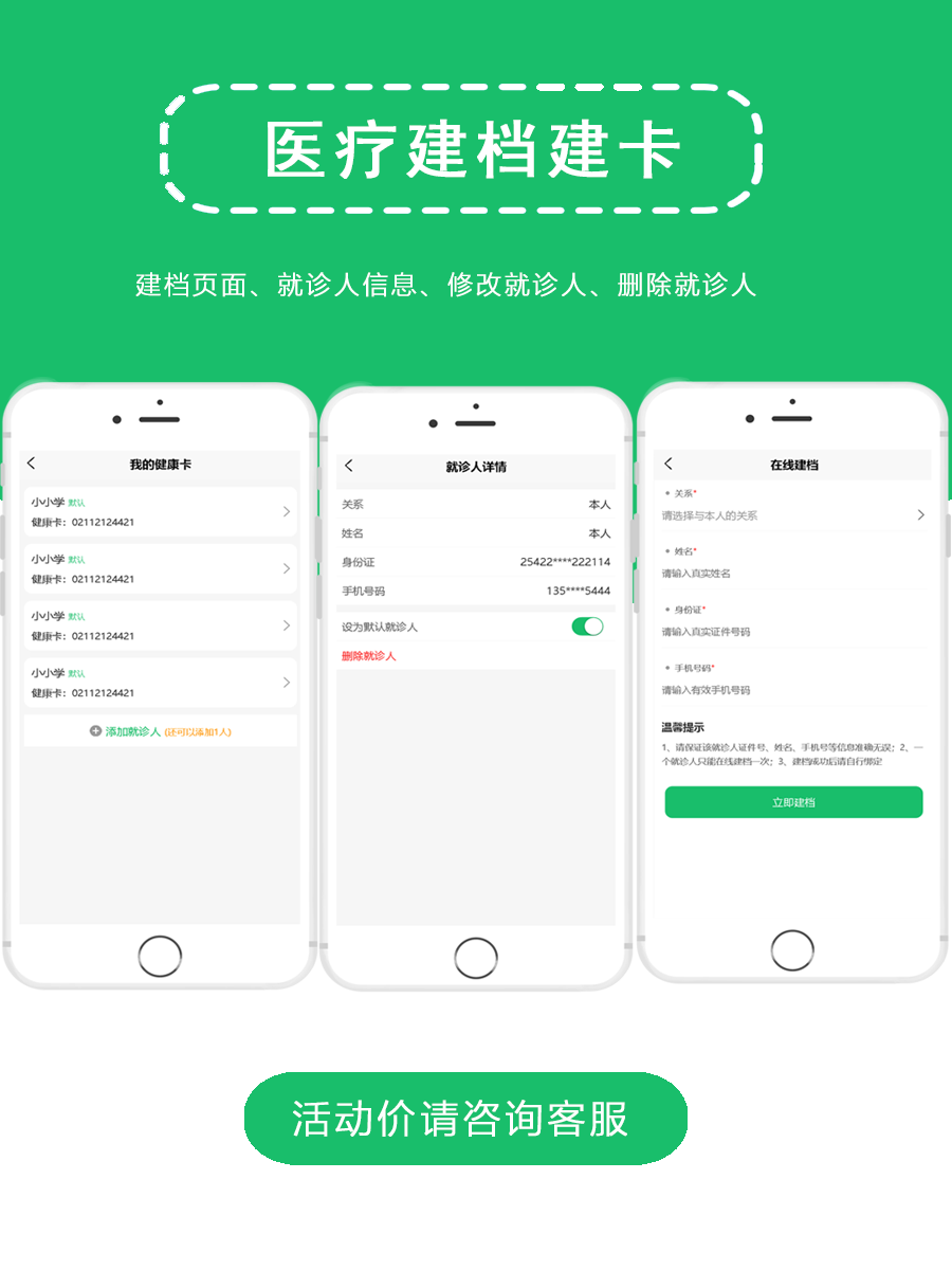 本系统在交付时未记载任何、医生信息、图片、各种用户协议等任何商业信息,需根据需要自行在平台后台进行添加。