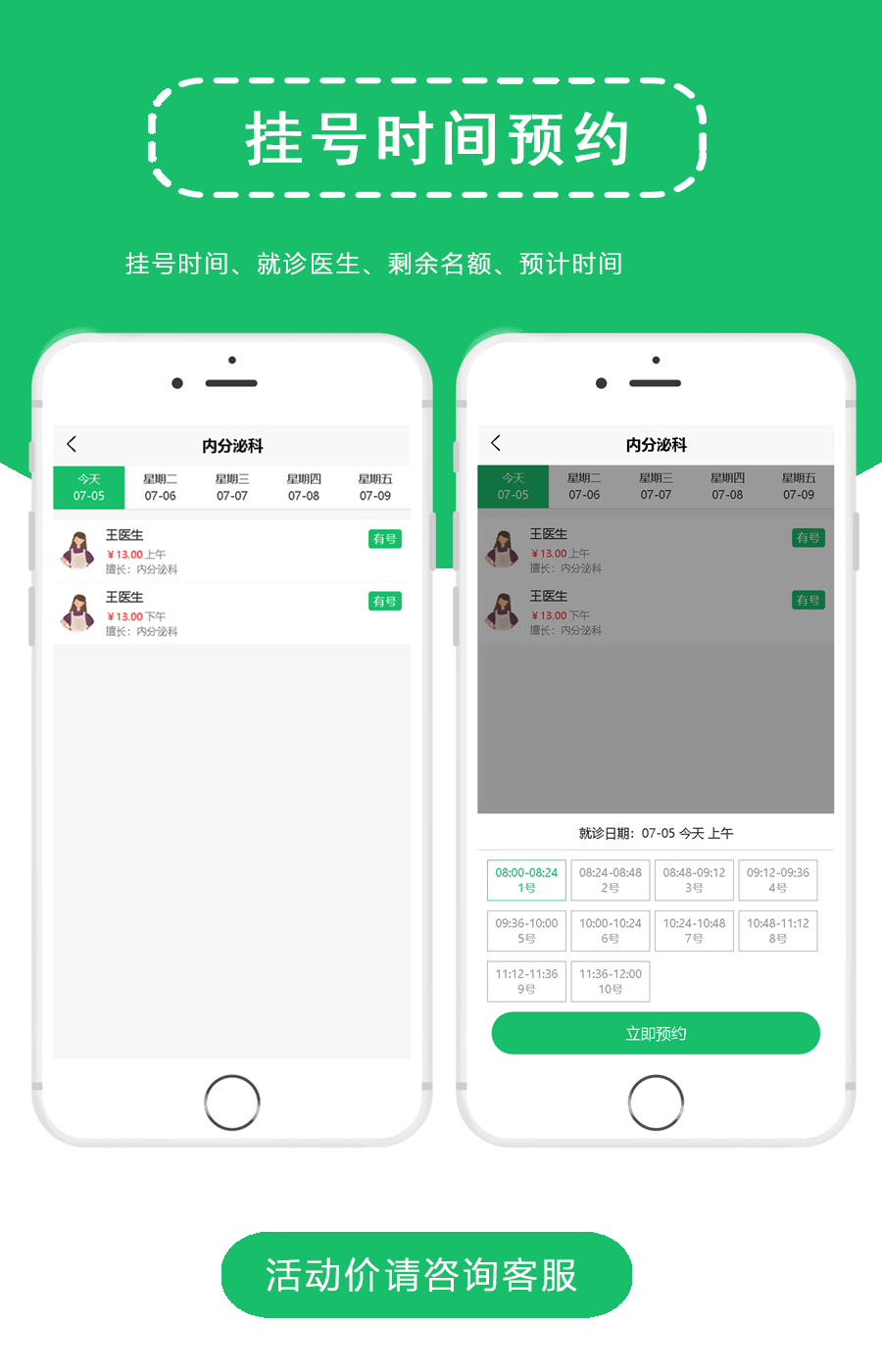 目前很多大型医院都有挂号预约系统,可以直接在线或远程挂号。但是还有很多中小型医院没有这套系统,导致排队过长,时间安排不均匀的情况。我们这款系统,非常适用于中小型医院开展网络挂号收费功能,私人诊所,社区医院,整形医美,私立医院等机构,减轻人员压力减少排队。