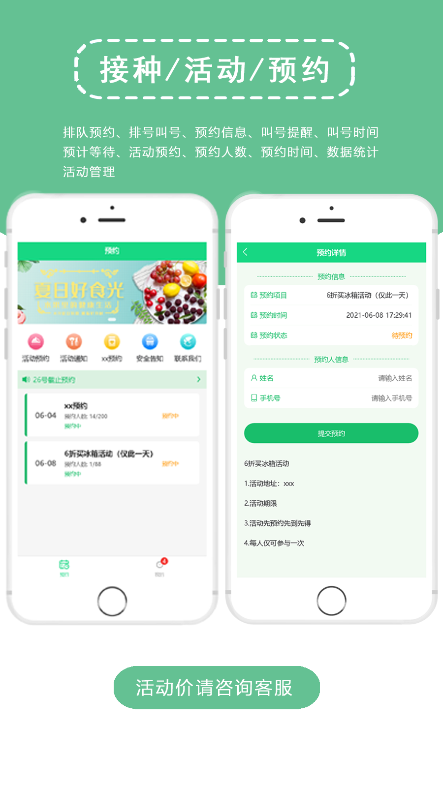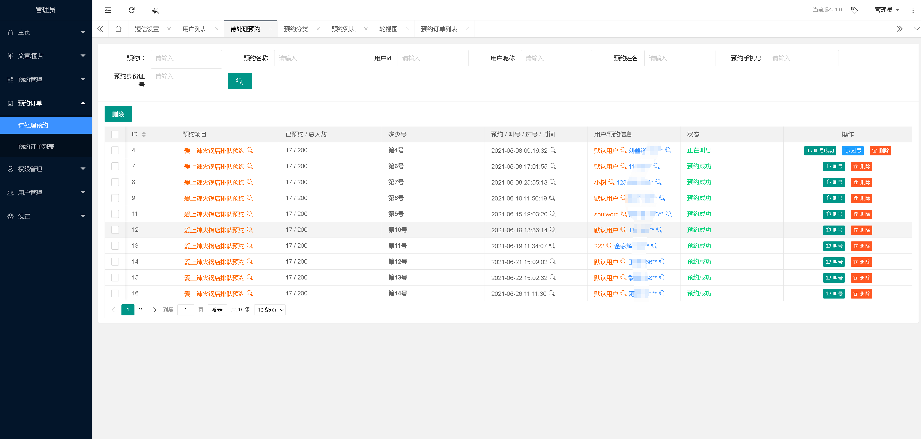 可用于多种行业,餐饮、理发、政务、景区,酒店,办理业务 等需要排队预约的场景,系统支持二开,二开费用咨询客服!