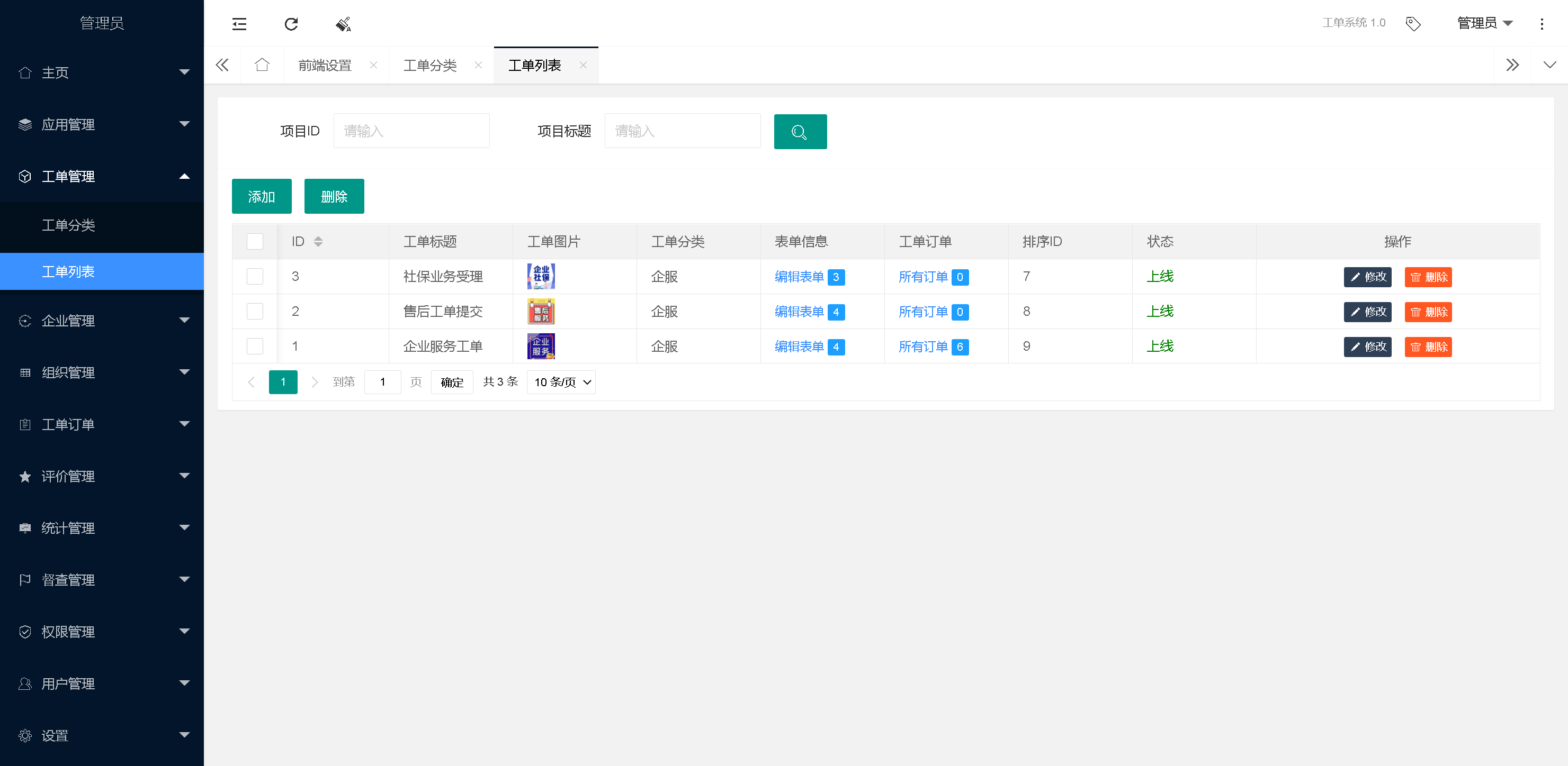 部门组织架构、层级权限、统计工单导出、督查督导、工单流程赋灯