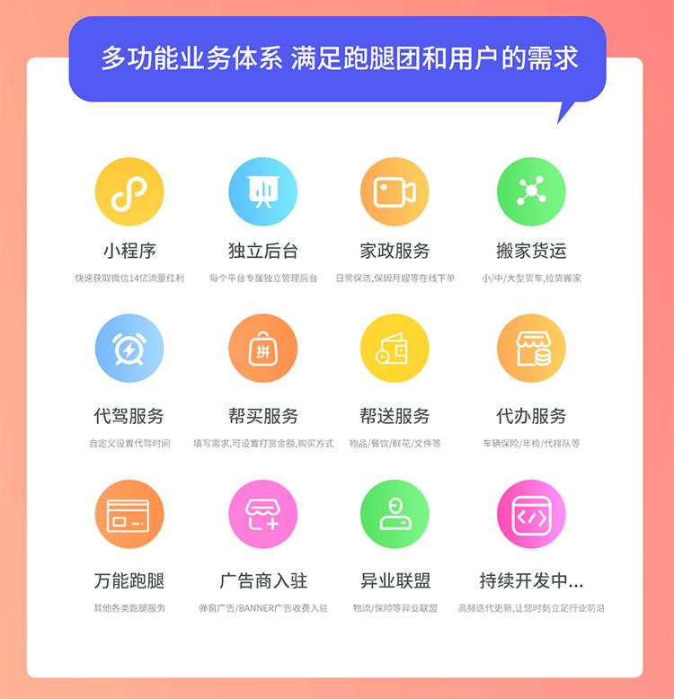 涵盖跑腿业务多功能,且可对接美团/饿了么平台,本地生活服务一网打尽
