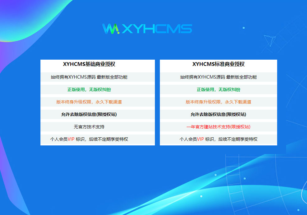 未经官方许可,禁止在 XYHCMS 的整体或任何部分基础上以发展任何派生版本、修改版本或第三方版本用于重新分发。