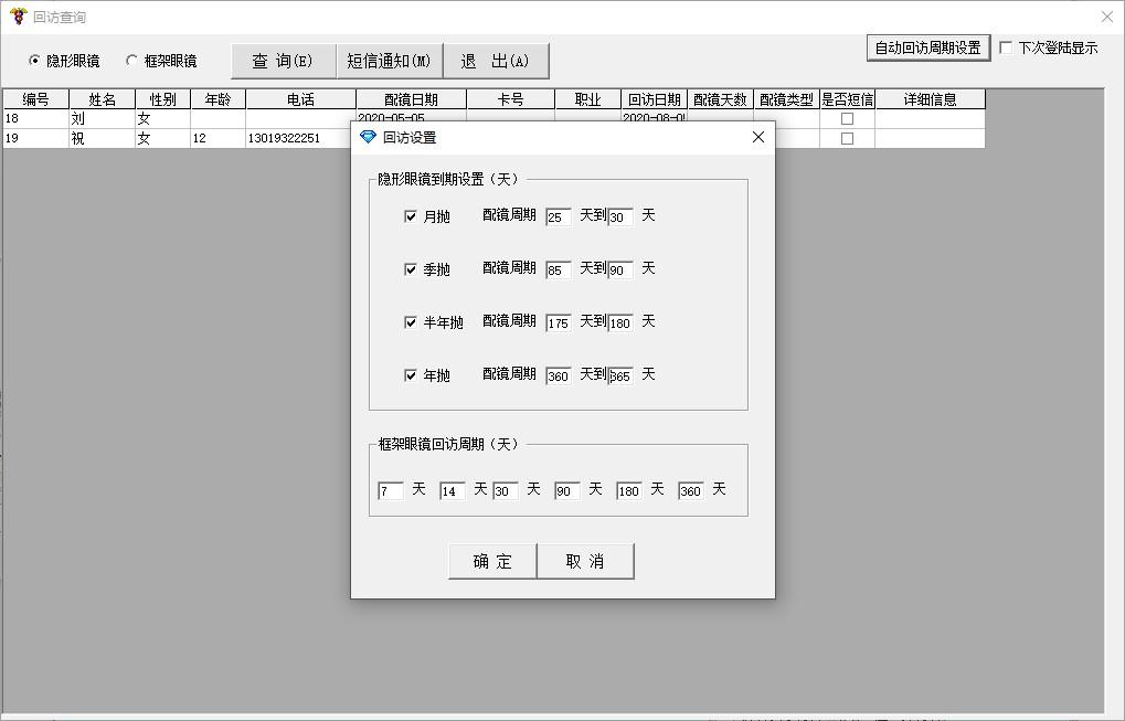 顾客回访:定期对顾客进行回访,提醒隐形到期时间等(需开通短信群发功能)