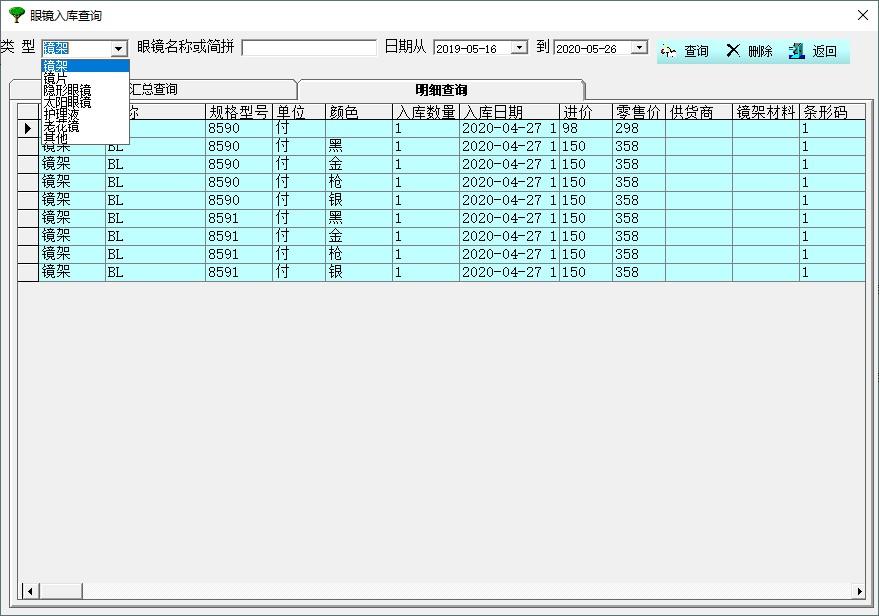 根据指定的时间,配镜类型等一系列的信息对配镜顾客查询