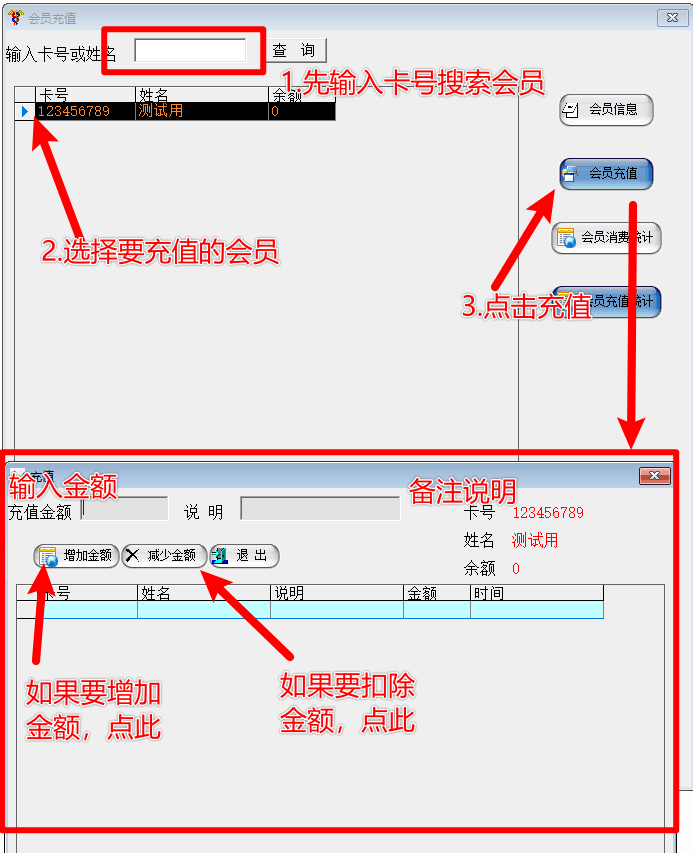 可以对会员进行预付卡金额的充值增加,减少以及预付卡消费状态查看等